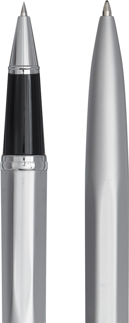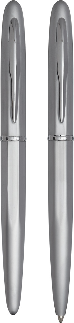 Schreibset COMTESSE: bestehend aus Metall-Tintenroller mit Verschlusskappe (schwarzschreibend) und Metall-Drehkugelschreiber (blauschreibend), mit hochglanz-verchromten Dekorelementen, Lieferung in Geschenkbox