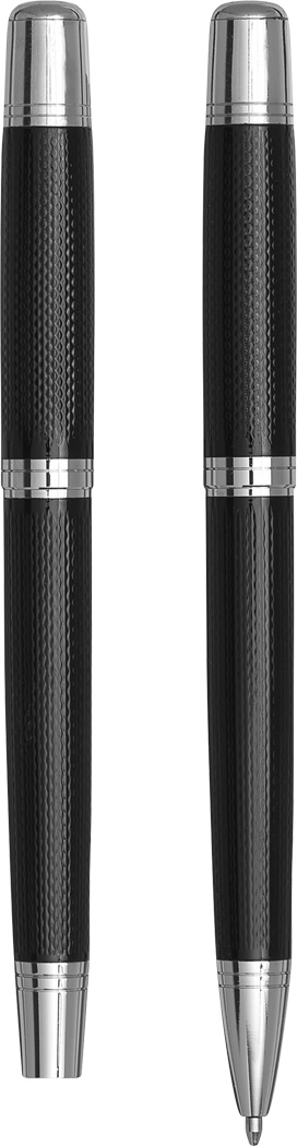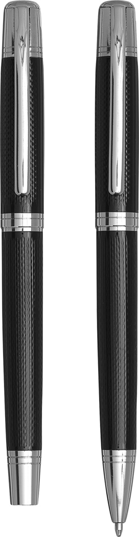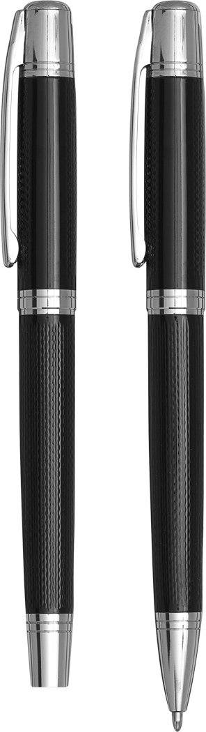 Schreibset MANZONI, 2-teilig: bestehend aus Kugelschreiber mit Drehmechanismus (schwarzschreibend) sowie Füllfederhalter mit Verschlusskappe mit Clip, inkl. 1 Tintenpatrone, beide Schreibgeräte mit Metall-Schaft, im Etui mit Aluminiumplatte