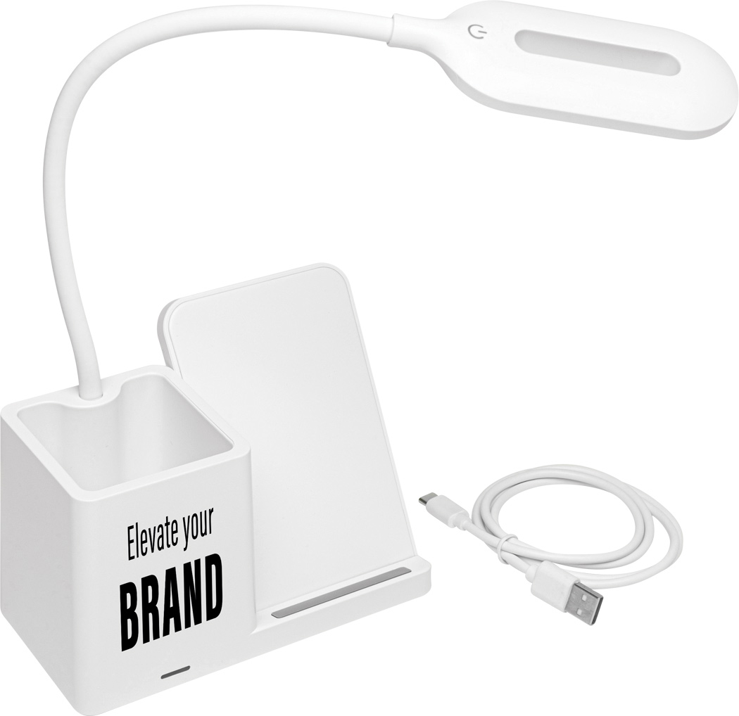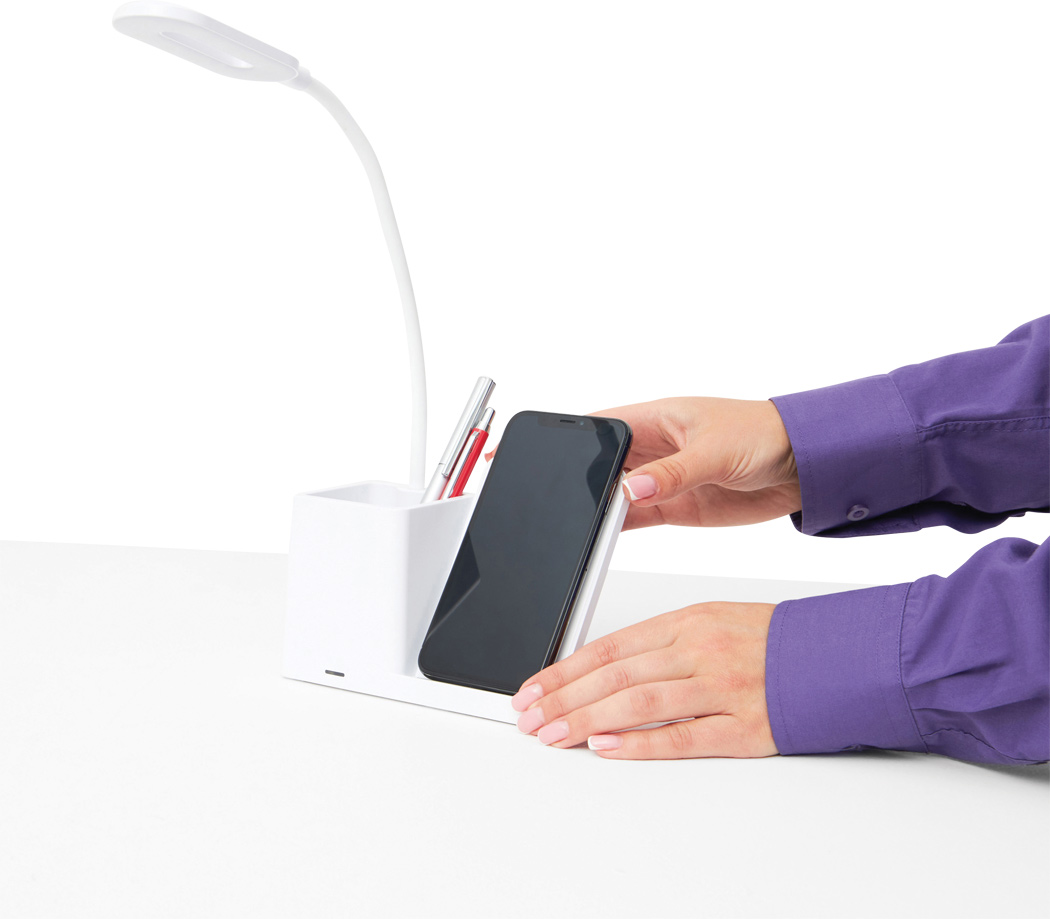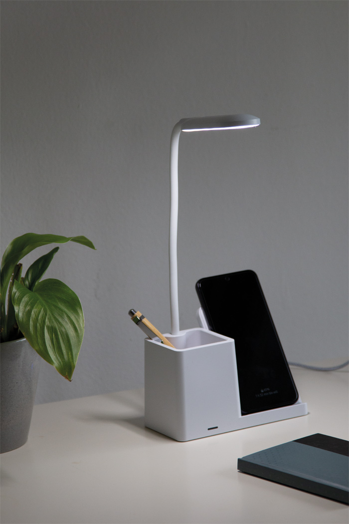 Schreibtisch-Lampe mit Ladestation LIGHT & CHARGE mit Firmenlogo und schneller Lieferung.