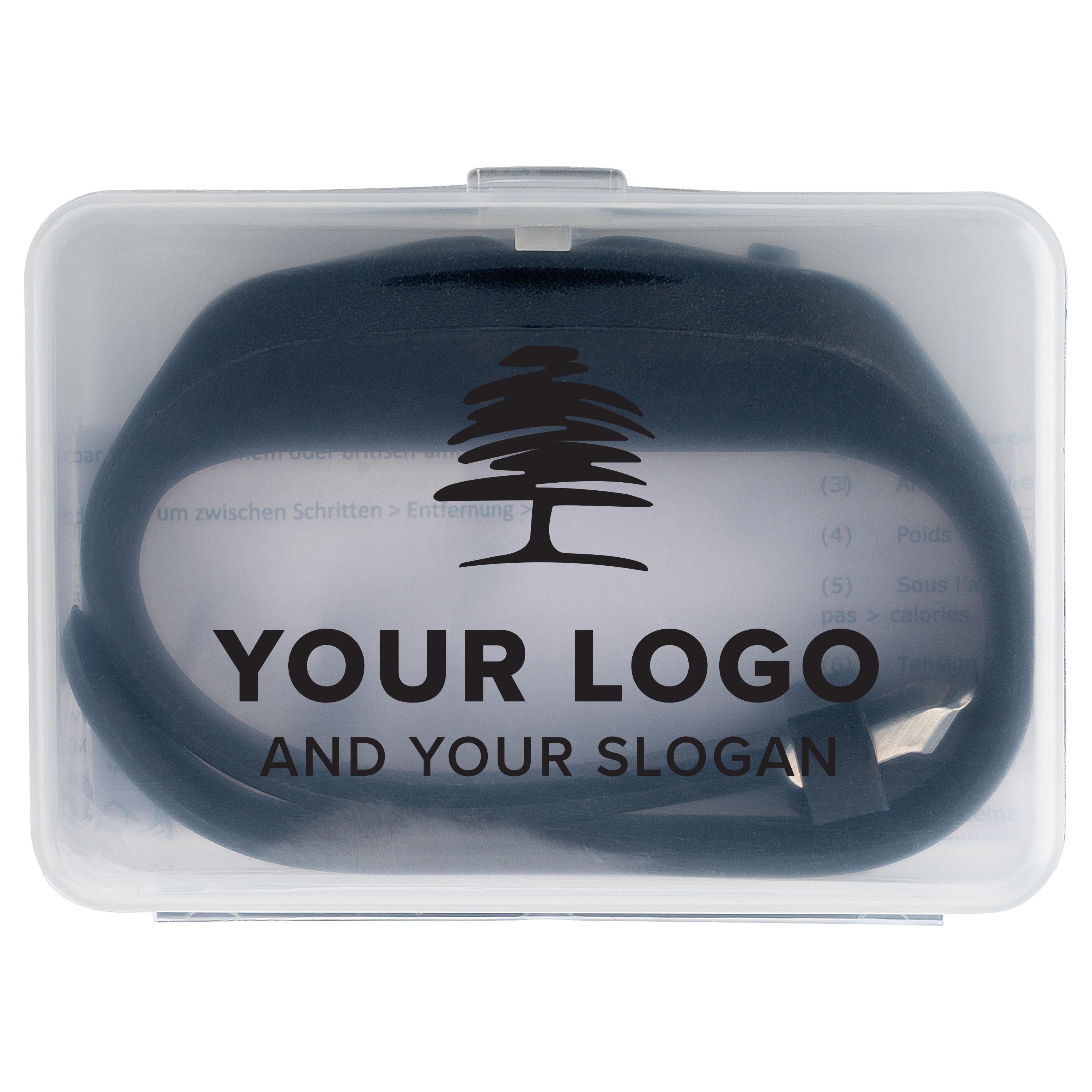 Schrittzähler mit Silikon Armband Tahir mit Logo für Neukundengewinnung.