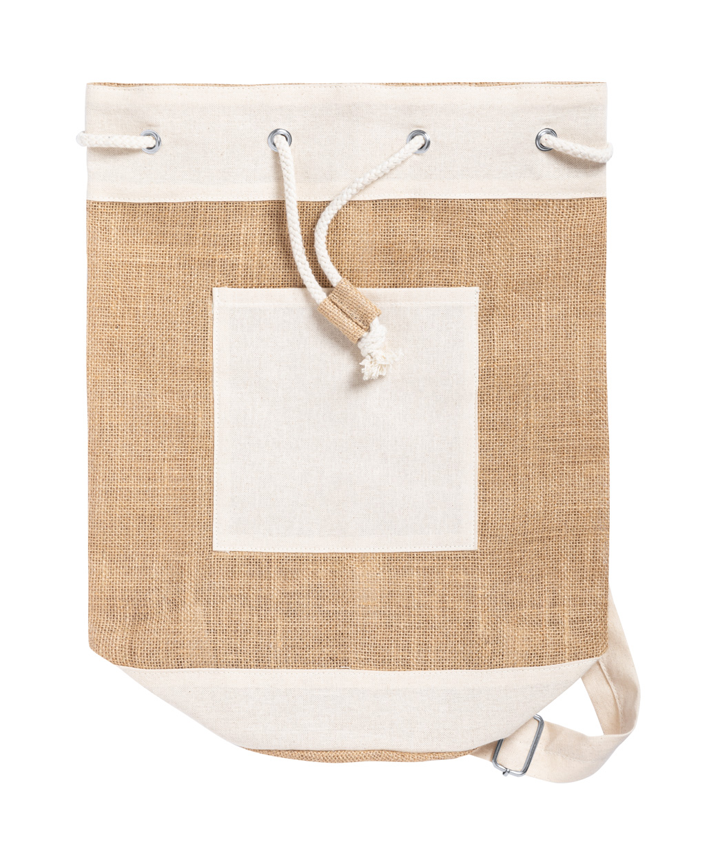 Jute-Seesack mit Baumwolltasche und Kordelzugverschluss.
