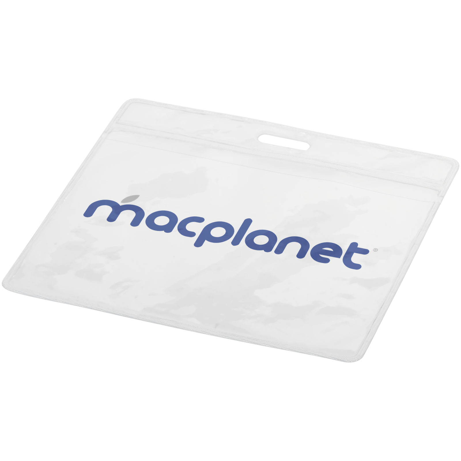 Serge durchsichtiger Ausweishalter mit Firmenlogo für Werbeaktionen.