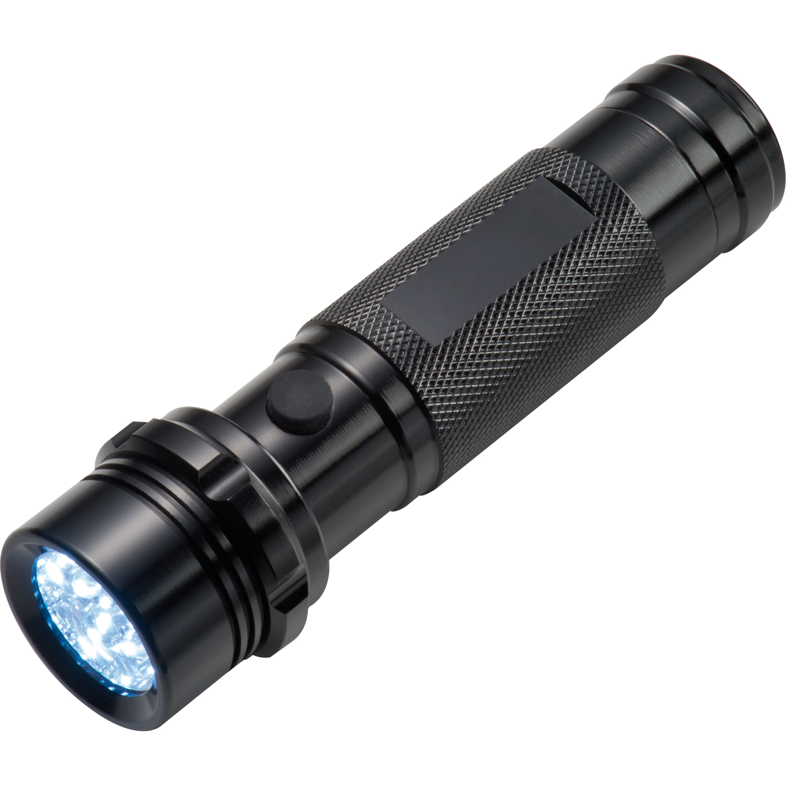 Set bestehend aus massiver Metalltaschenlampe mit 14 LEDs und Multitool mit Zange, Säge, Dosenöffner, Nagelfeile, großem und kleinem Schlitzschraubendreher, Kreuzschraubendreher, extra scharfem Messer und Fischentschupper mit Maßeinheit. Hier wird Ihre Werbung per Lasergravur auf den Griff des Multitools oder auf die ebene Fläche auf dem Griff der Taschenlampe angebracht.