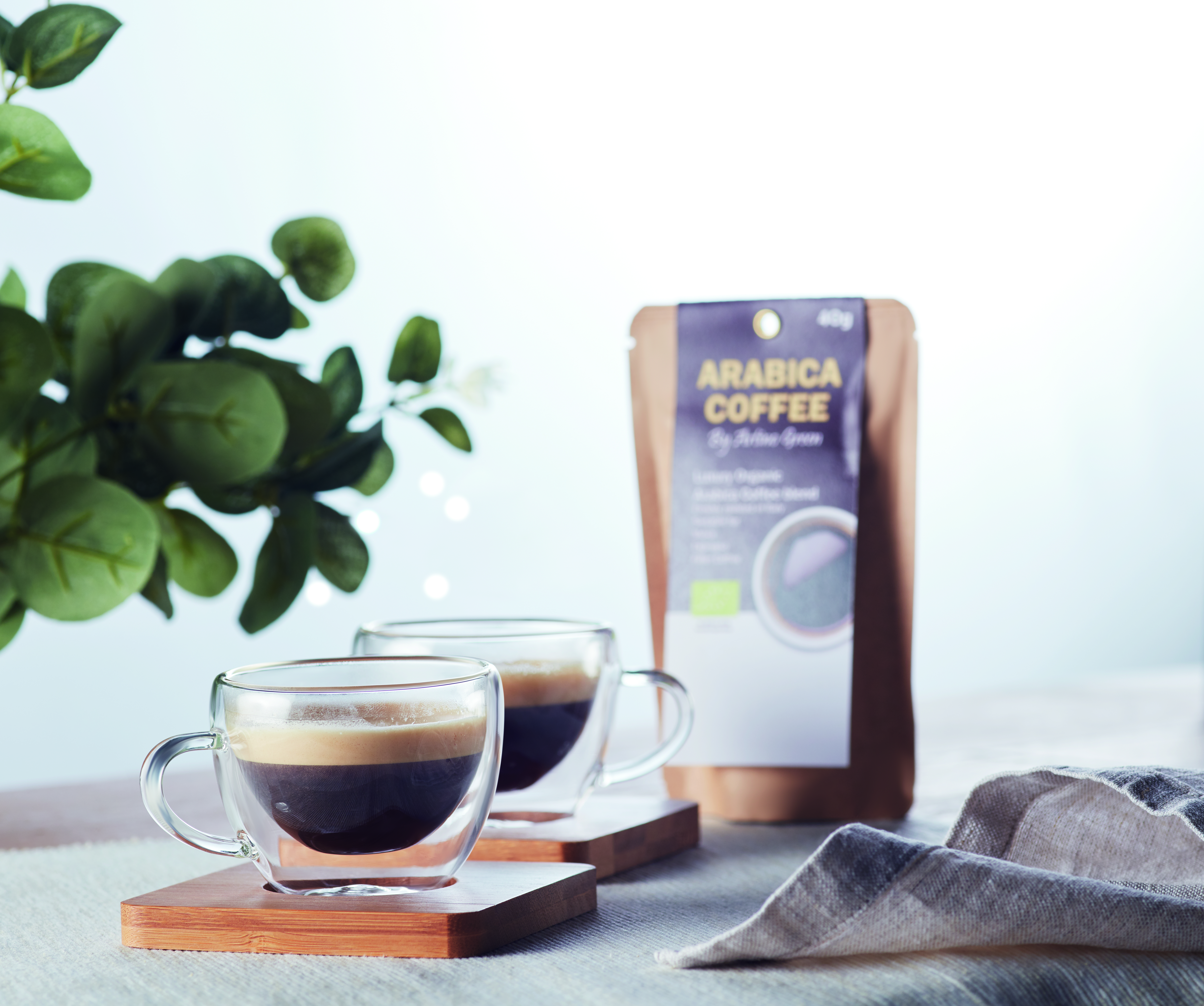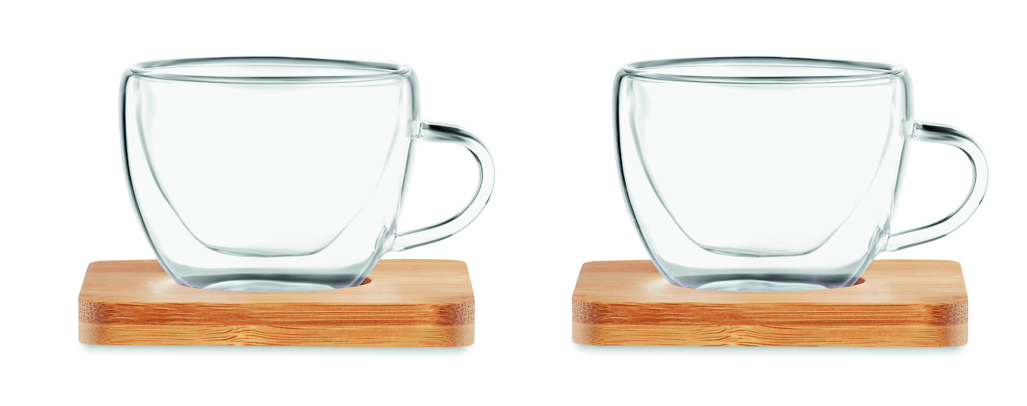 Set mit 2 doppelwandigen Espressogläsern mit Untersetzern aus Bambus. Verpackt in einer Box aus Kraftpapier. Füllmenge: 60 ml. Bambus ist ein natürliches Produkt, es kann daher zu leichten Abweichungen in Farbe, Dekor und Maßen kommen.