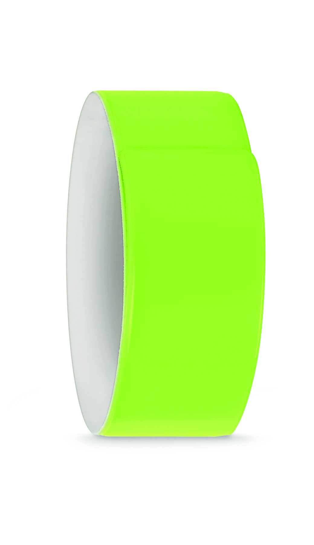 Snap-Reflektorband für Arm oder Bein aus PVC mit weißem PVC auf der Rückseite. Nur für Werbezwecke geeignet. 32 x 3cm.