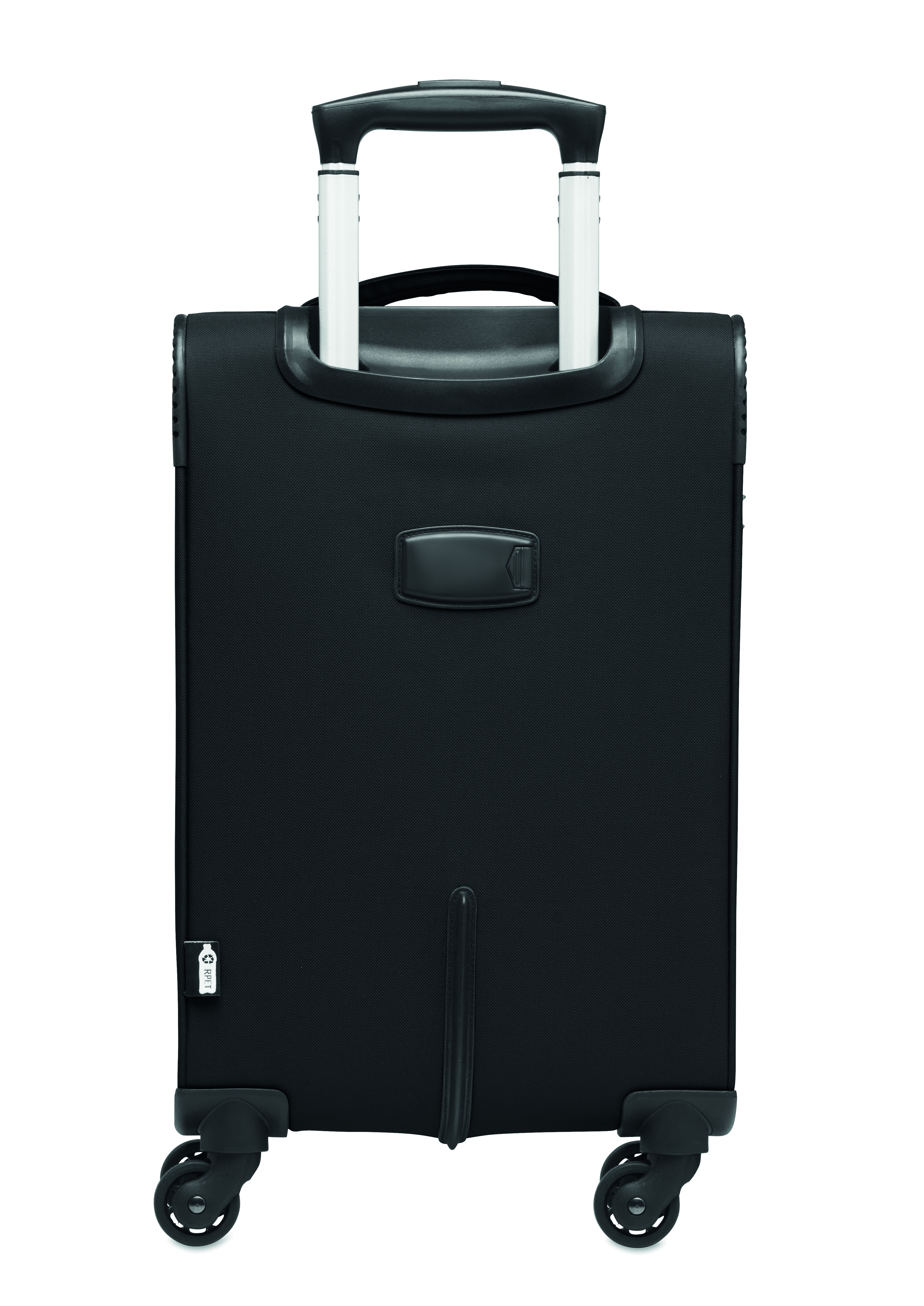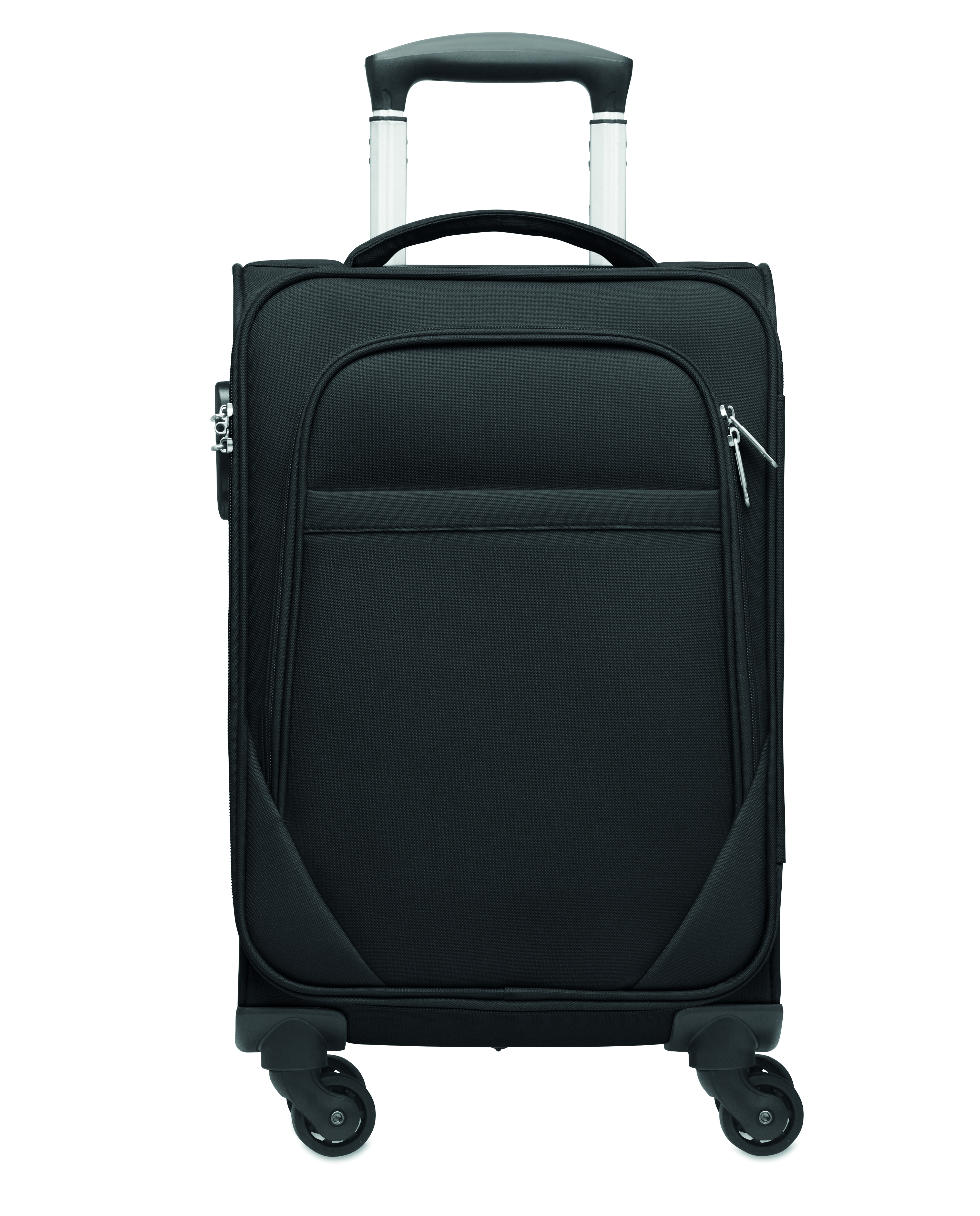 Kabinen Trolley aus 600D RPET Polyester. Außenfach mit Reißverschluss sowie Fronttasche mit Reißverschluss. Mit integriertem Zahlenschloss.