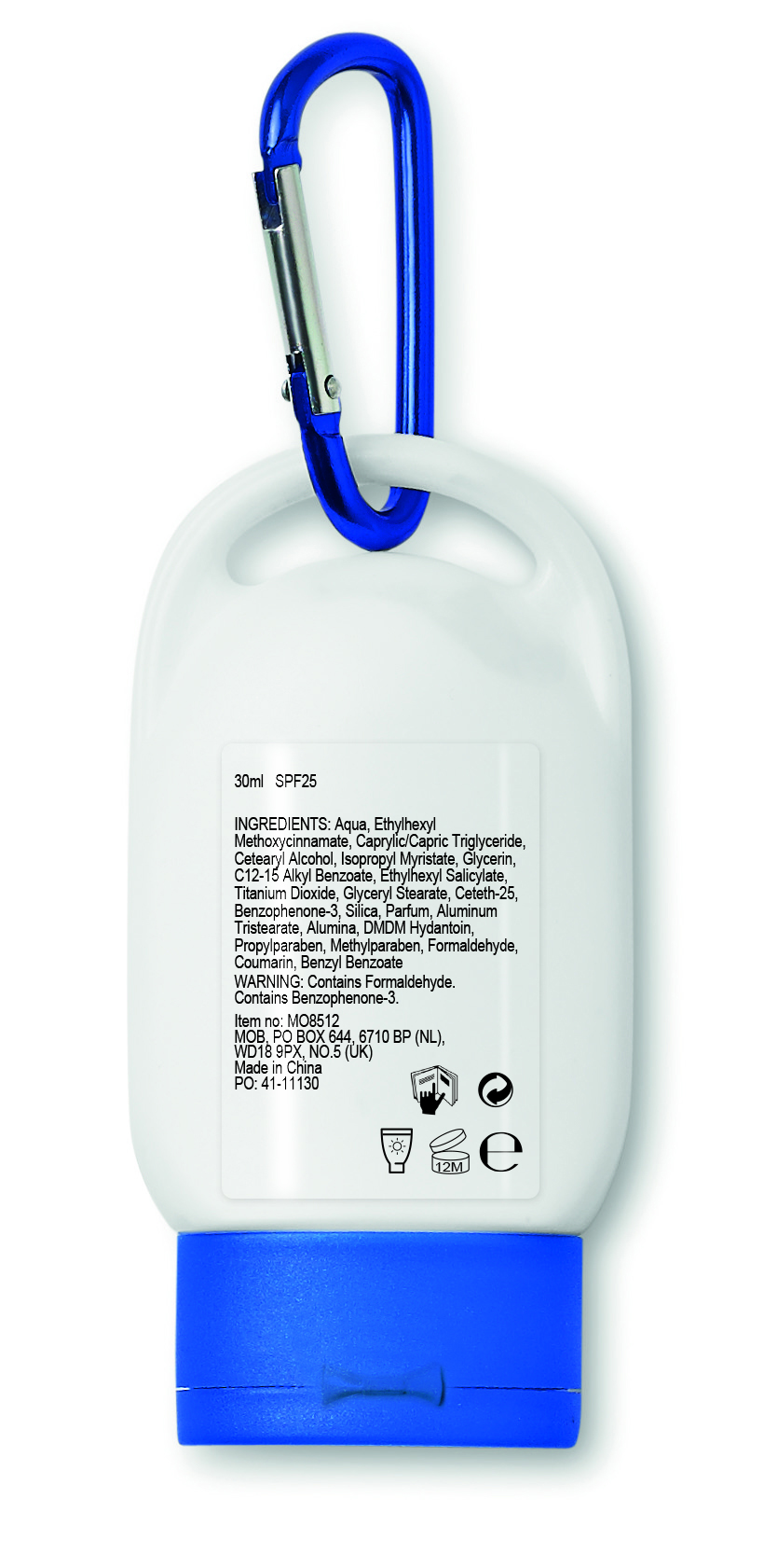 Sonnencreme Lichtschutzfaktor LSF25. Füllmenge: 30 ml. Mit praktischem Karabiner.