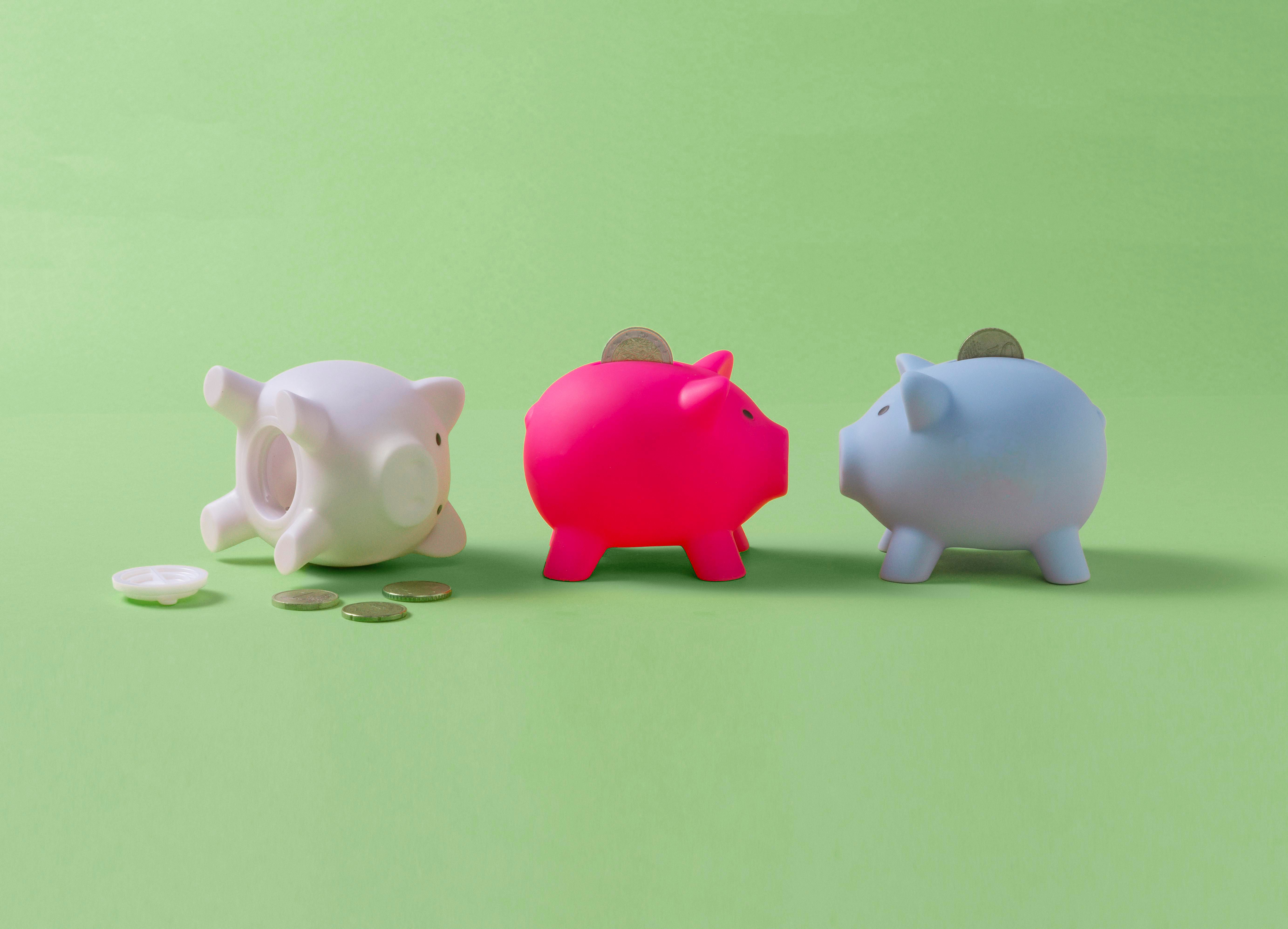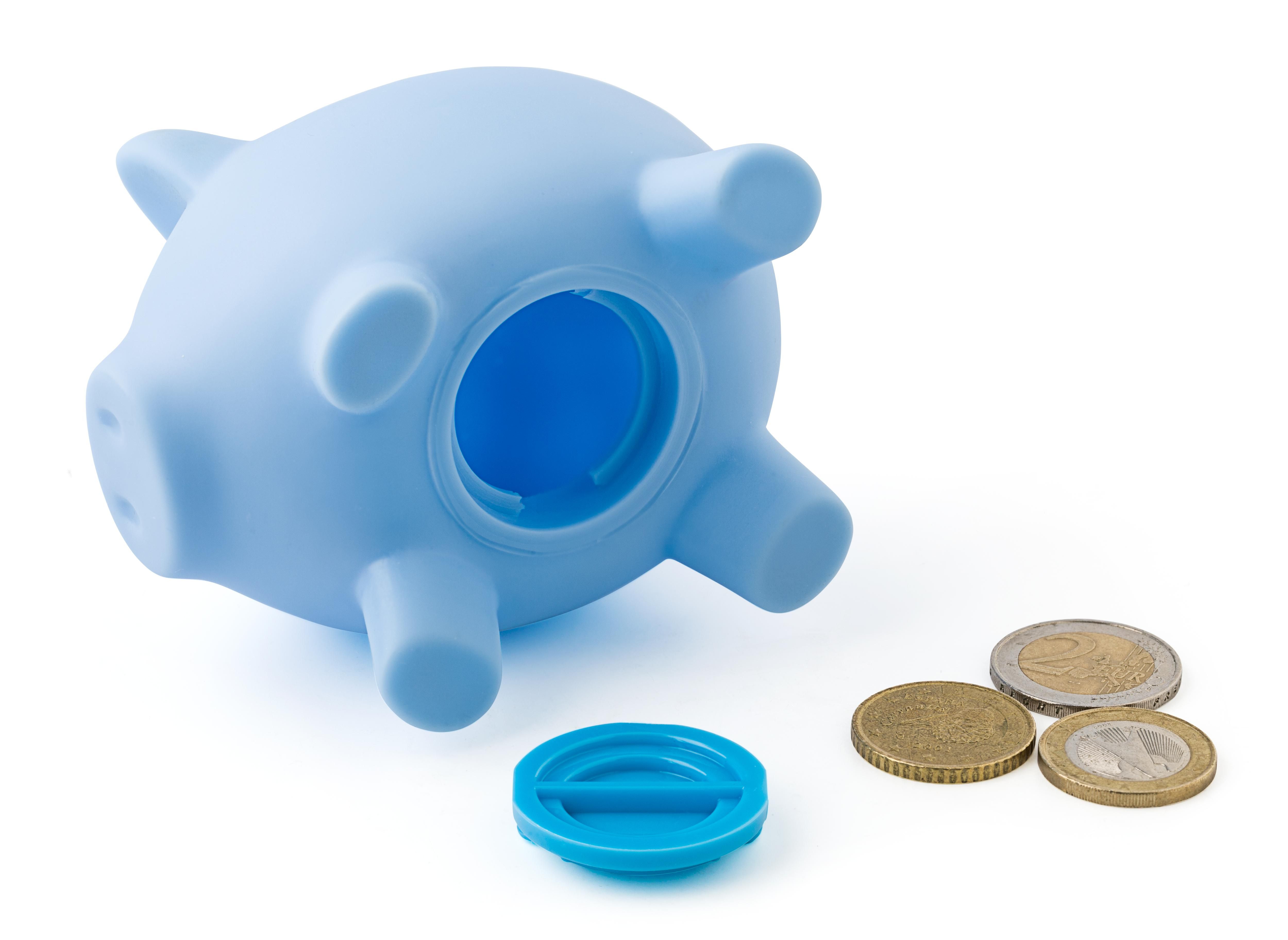 Sparschwein aus Kunststoff, Öffnung auf der Unterseite.