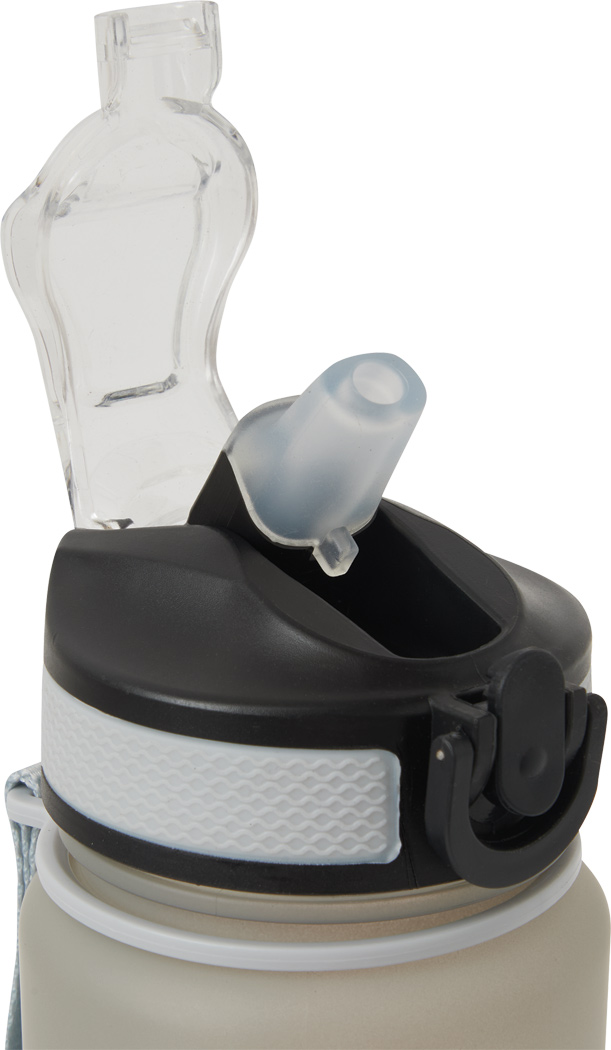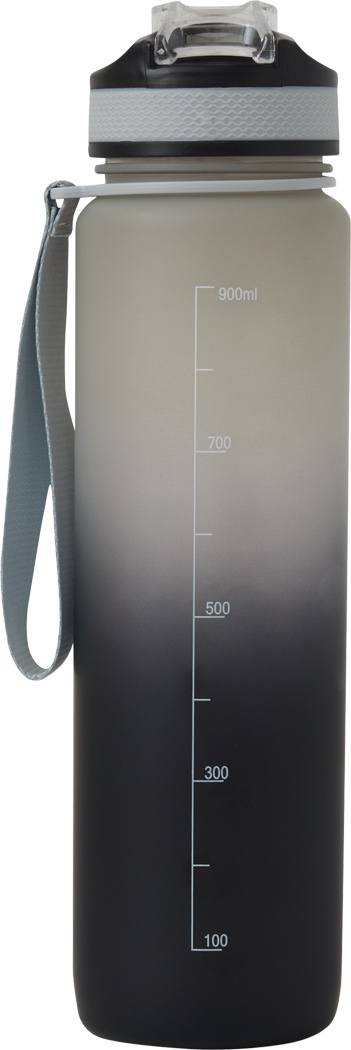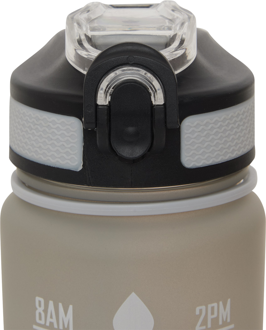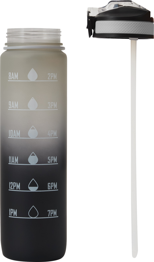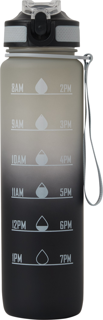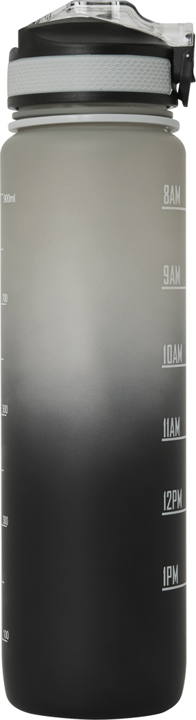 Sport-Trinkflasche HYDRO LEVEL: gefrostete farbige Trinkflasche aus langlebigem PETG, farbig abgestimmter Kunststoff-Deckel mit sicherem Schraubverschluss und Silikon-Dichtring, einhändig zu öffnender Flip-Top-Deckel mit Sicherheitsverriegelung, integrierter, abnehmbarer Trinkhalm mit weichem Silikonmundstück, motivierende Zeit- und Wassermengenskala (Uhrzeiten / ml), mit Trageschlaufe, Füllmenge ca. 1.000 ml, in Box