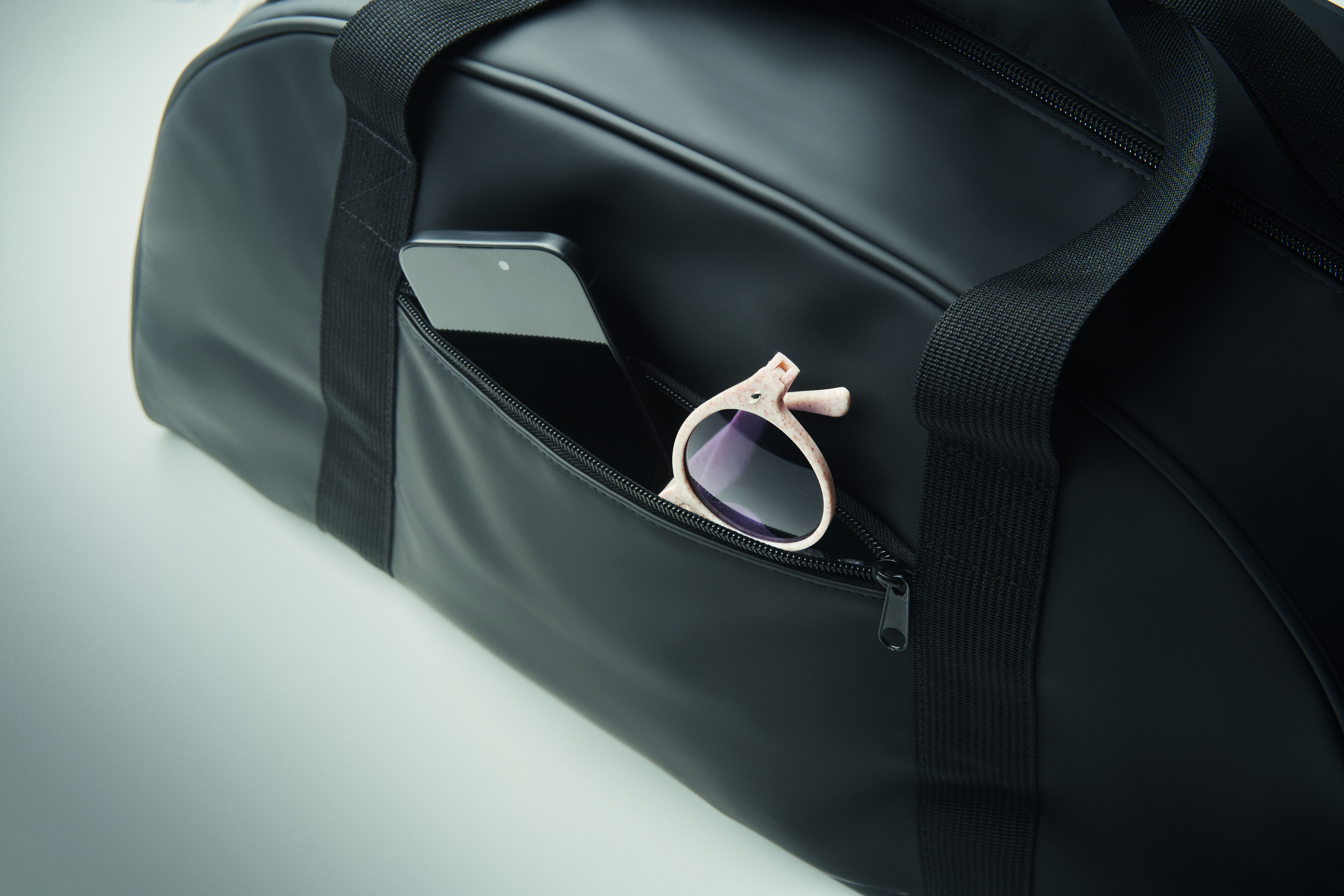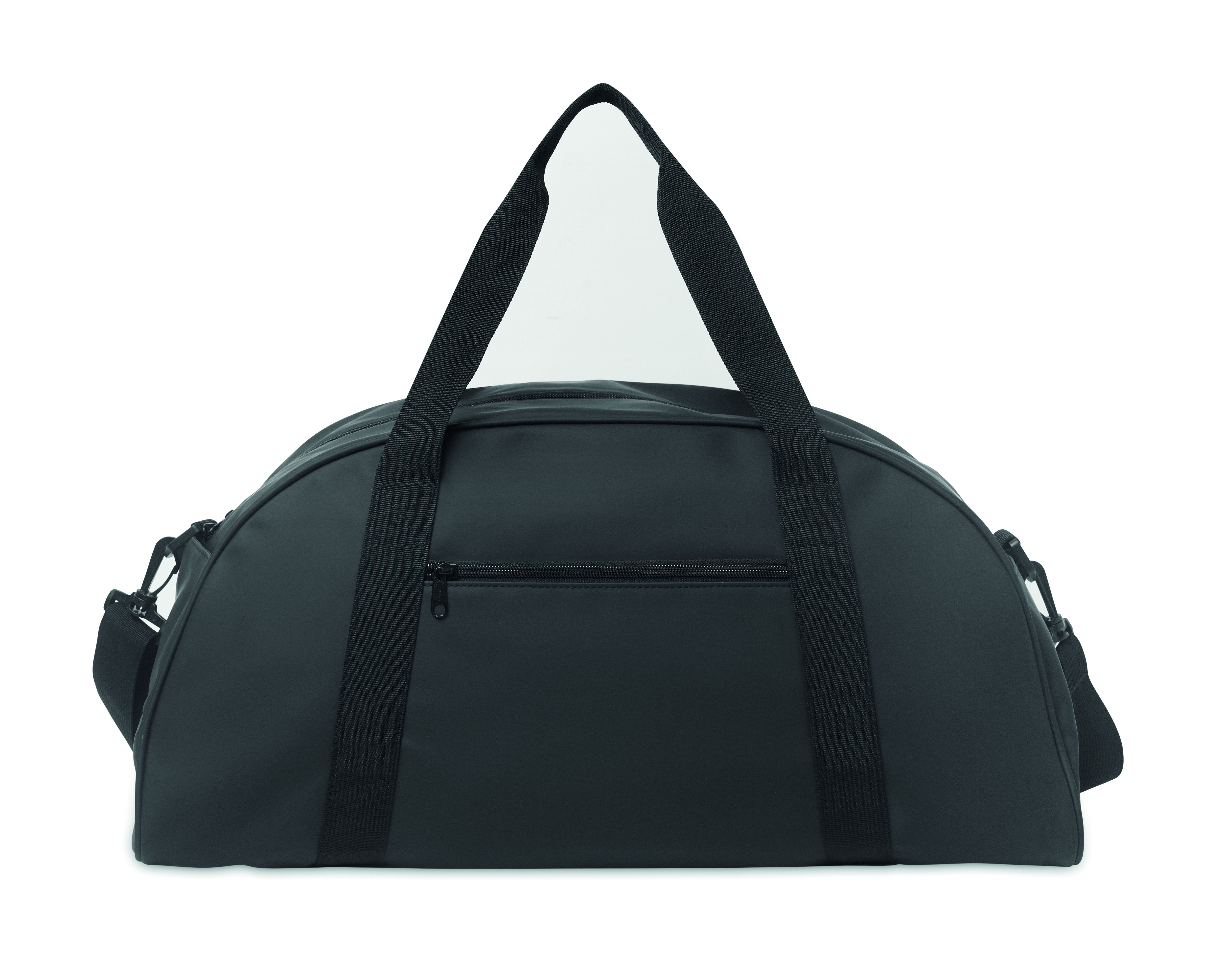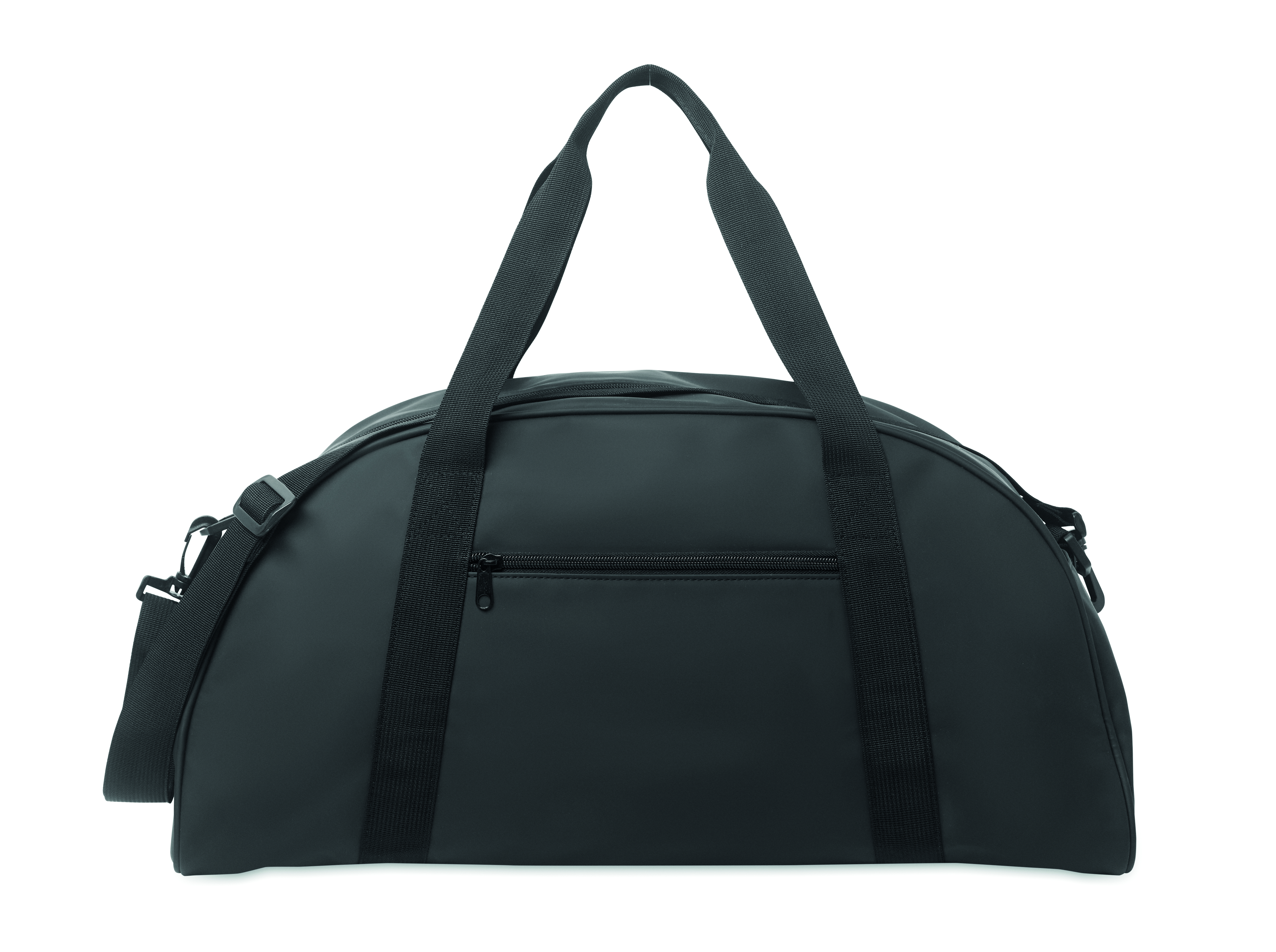Sport- oder Reisetasche aus weichem PU mit schaumstoffverstärktem Boden. Hauptfach, Fronttasche und Innentasche mit Reißverschluss. Futter aus 210D RPET-Polyester. 2 Griffe und verstellbarer, abnehmbarer Schultergurt.