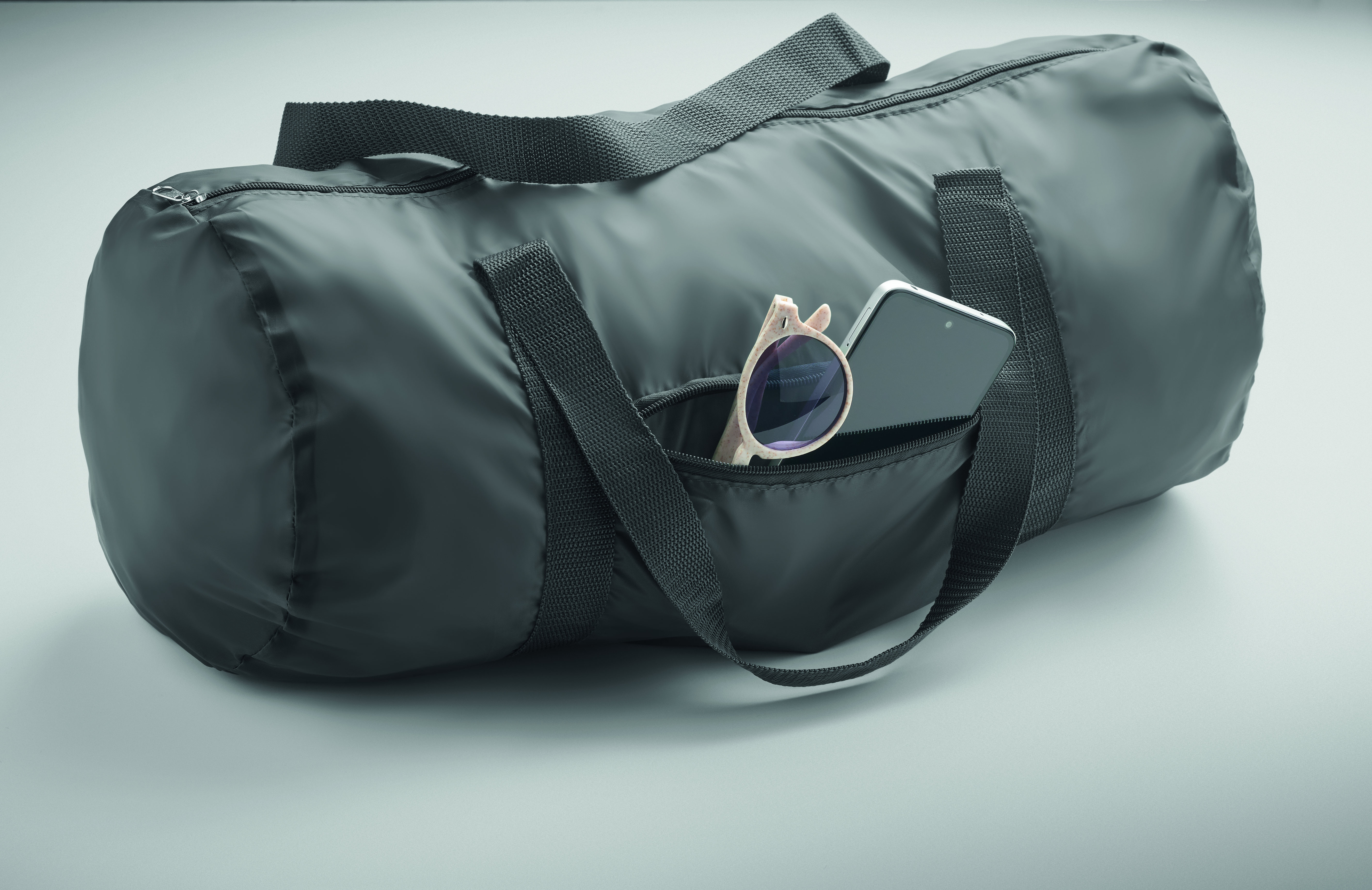 Sport- und Reisetasche RPET DUFF mit Logo für Marketingaktionen.