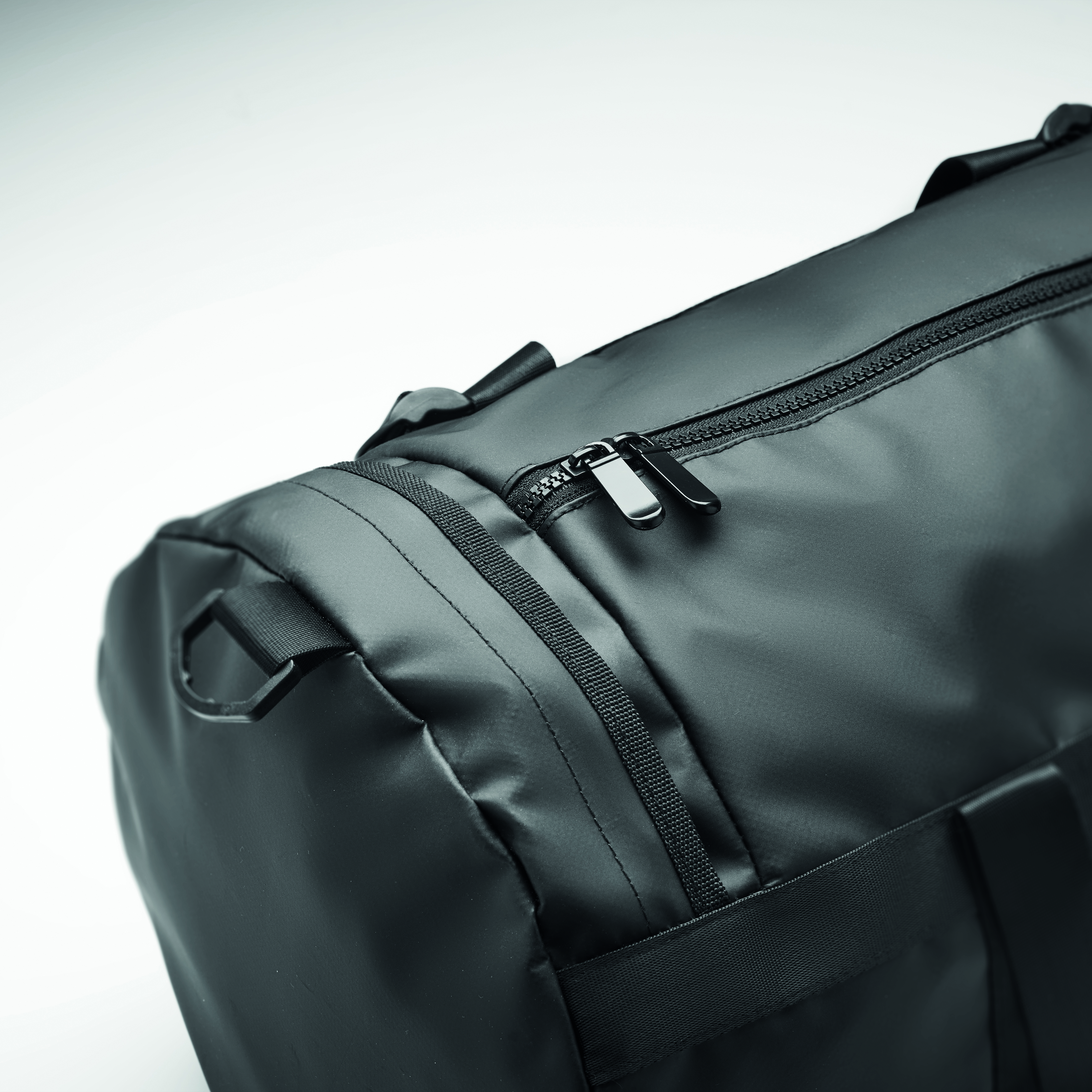 Sport- und Reisetasche aus 50C-Plane. Innenfach und seitliches Fach mit Reißverschluss. Mit Komfortgriff und gepolstertem Boden.