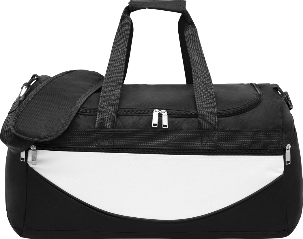 Sporttasche CHAMP: Reißverschluss-Hauptfach, farblich abgesetztes Reißverschluss-Vorfach, seitliche Reißverschluss-Taschen, verstärkte Tragegriffe, verstell- und abnehmbarer Gurt mit Schulterpolster