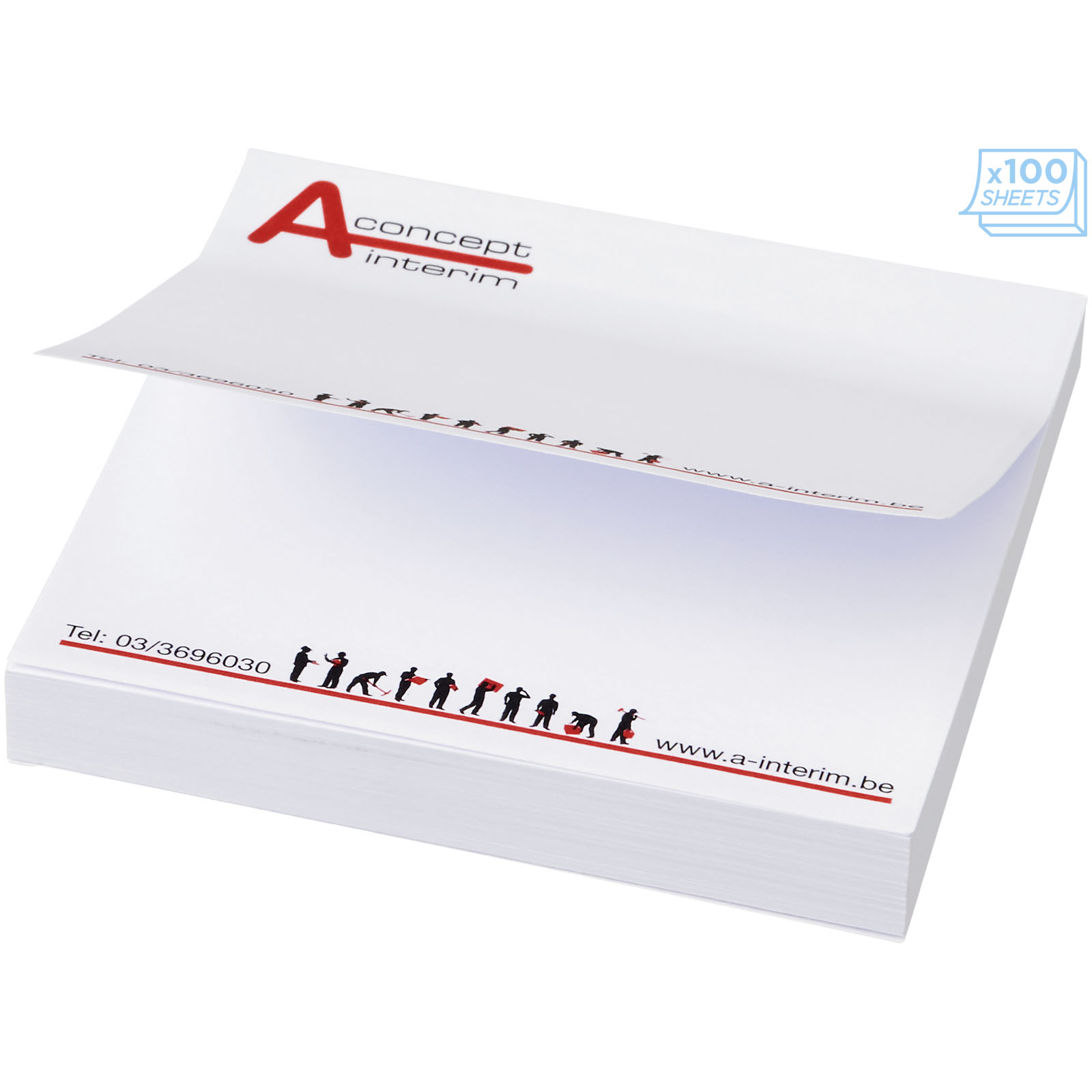 Sticky-Mate® Haftnotizen 75 x 75 mm für Firmen als Werbemittel bedruckt.