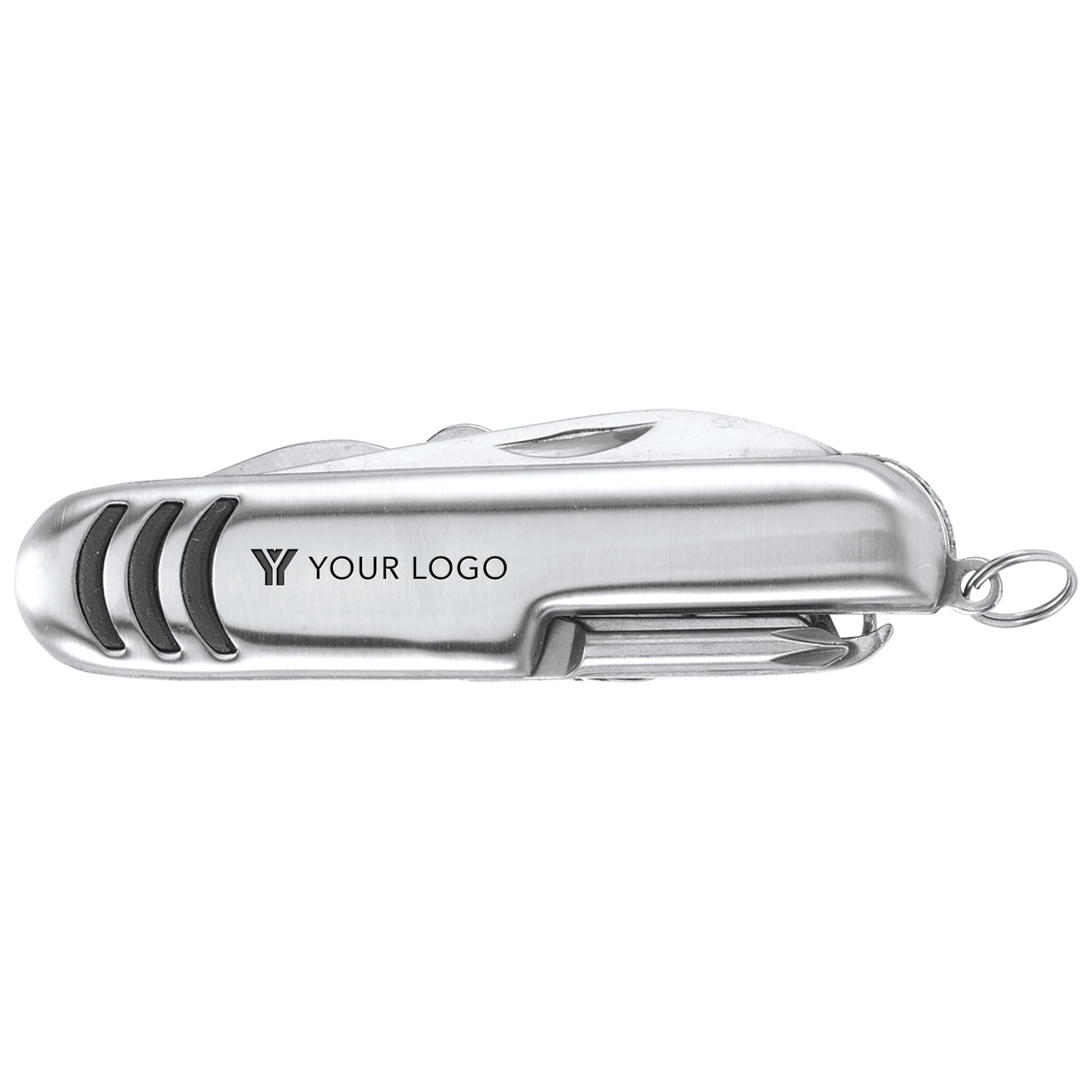 Taschenmesser aus rostfreiem Stahl, 7-tlg., bestehend aus Korkenzieher, Schraubendreher, Flaschenöffner, Schere, Messer, Feile und Dosenöffner.