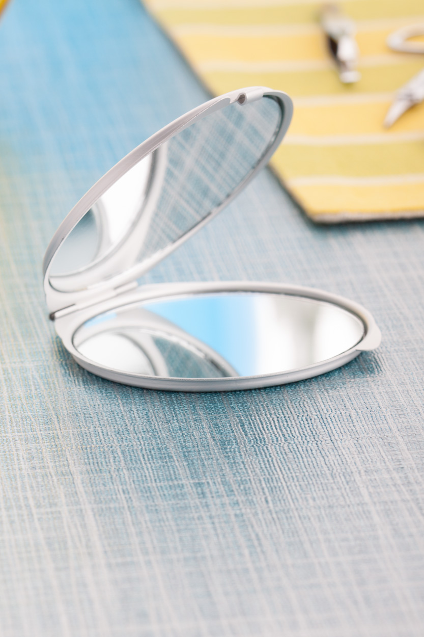 Doppelter Spiegel aus Aluminium - ein Spiegel mit Vergrößerung.