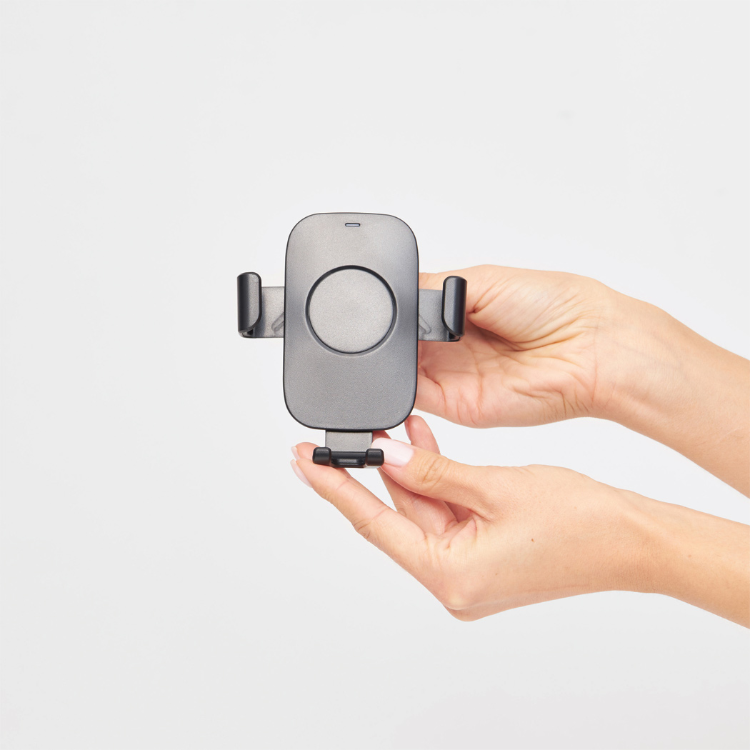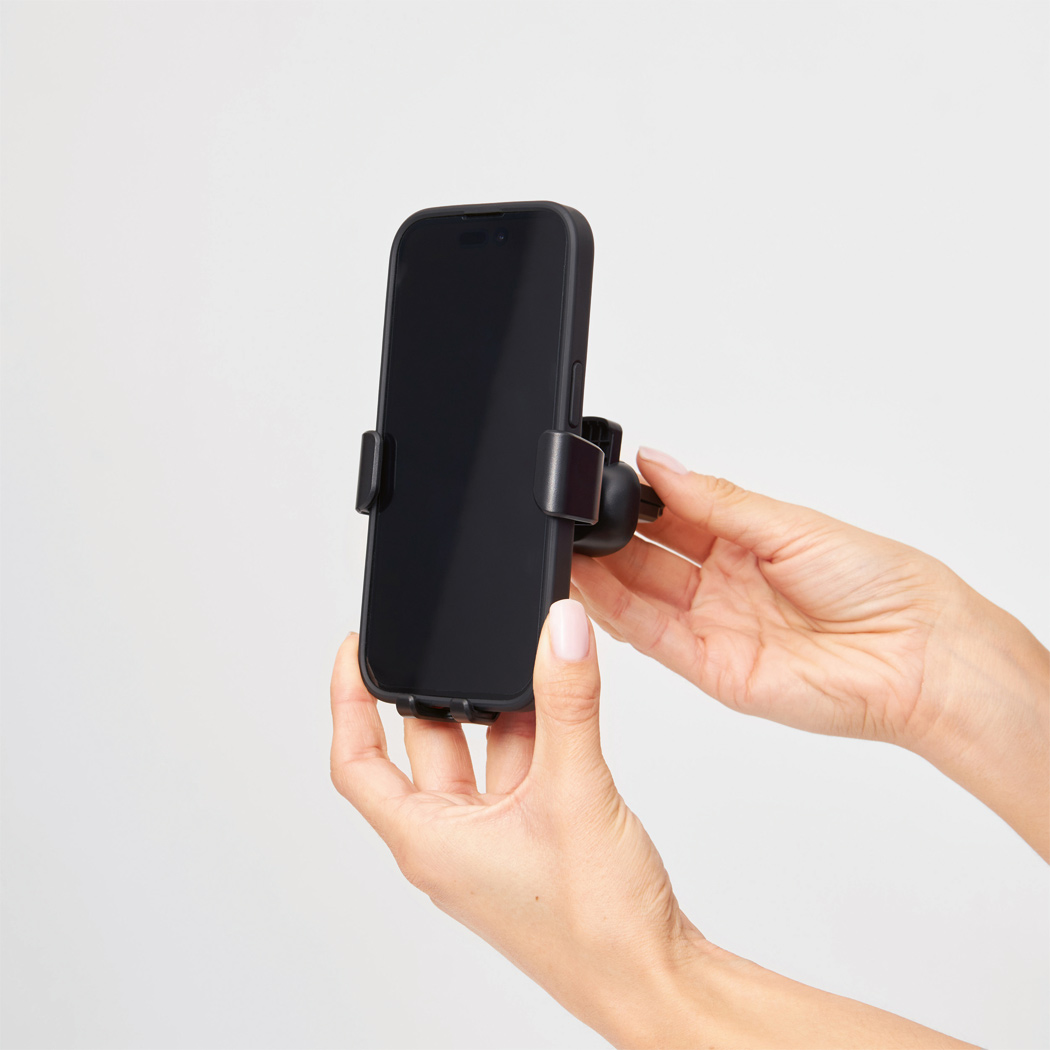 Smartphone-Halter IN CAR: geeignet für die gängigsten Smartphones mit induktiver Ladefunktion, Klemme für die Befestigung an Auto-Lüftungsschlitzen (für verschiedene Lamellenstärken), Kugelgelenk zur optimalen Ausrichtung, Ladeeinheit mit integriertem USB-Ladekabel (Länge: 1 m), in Box