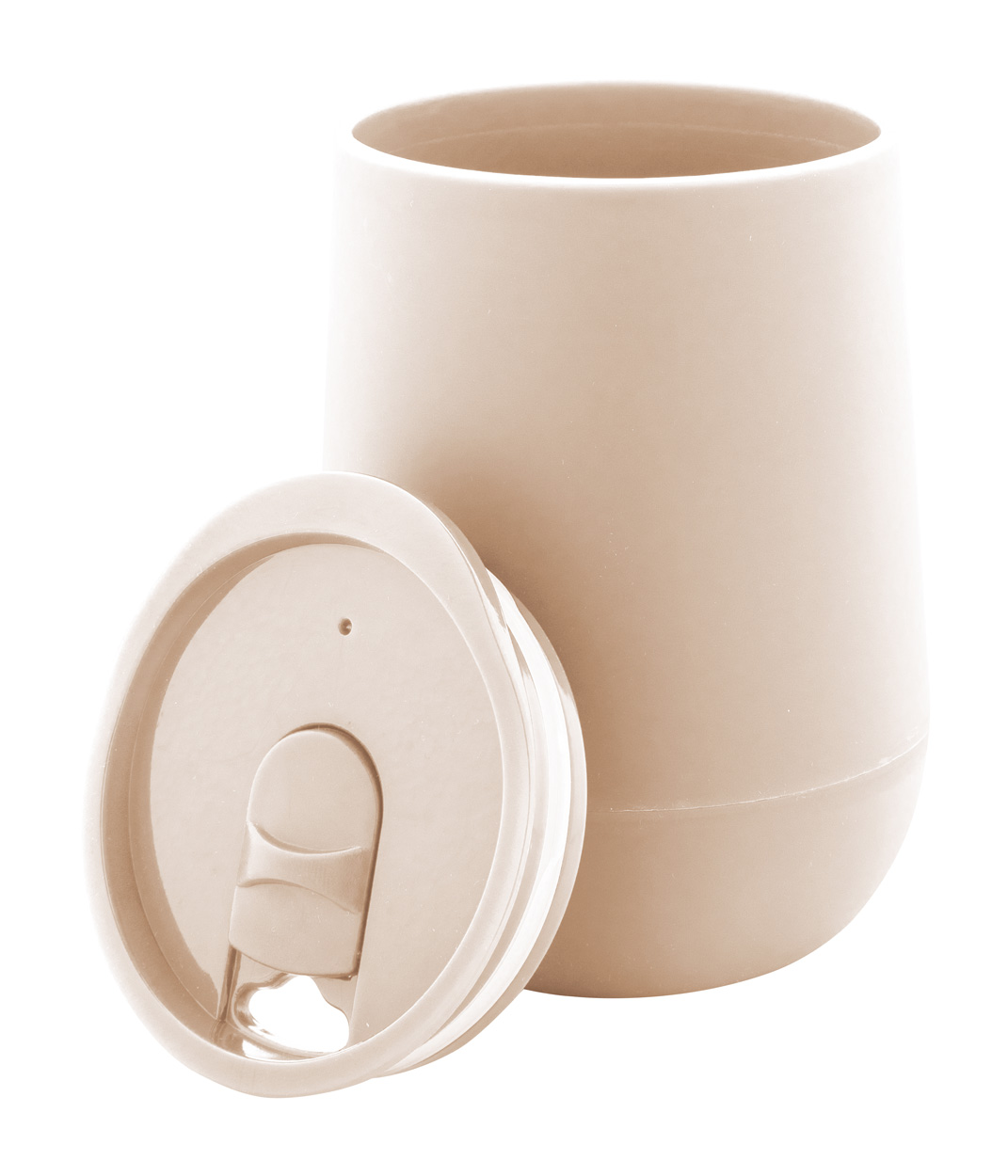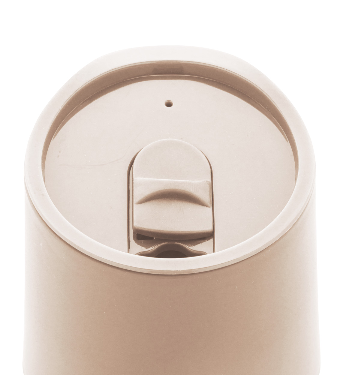 Thermobecher aus doppelwandigem PP-Kunststoff mit Trinkdeckel. Füllmenge: 300 ml.