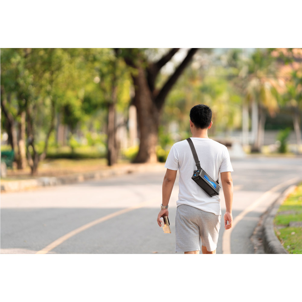 Tragbarer Lautsprecher mit einem Trage- und Aufbewahrungsgurt, der an den Körper angepasst oder als kurzer Griff verwendet werden kann. Der Akku hat eine Autonomie von ca. 5 Stunden und ermöglicht das Aufladen anderer Geräte. Material: ABSDrahtlose Übertragung: BT v5'0Eingang: USB-A, AUX 3.5 mm und USB-CSchallleistung: 16 W (2 x 8 W) Kapazität: 3'000 mAhAusgang: USB-A und AUX 3.5 mmFunktionen: Steuerung der Lautstärke und der Wiedergabeliste des MobilgerätsInklusive: USB-C-Ladekabel und 3.5 mm AudioVollständig anpassbares GitterLieferung: Weiße Geschenkbox 250 x 100 x 90 mm
