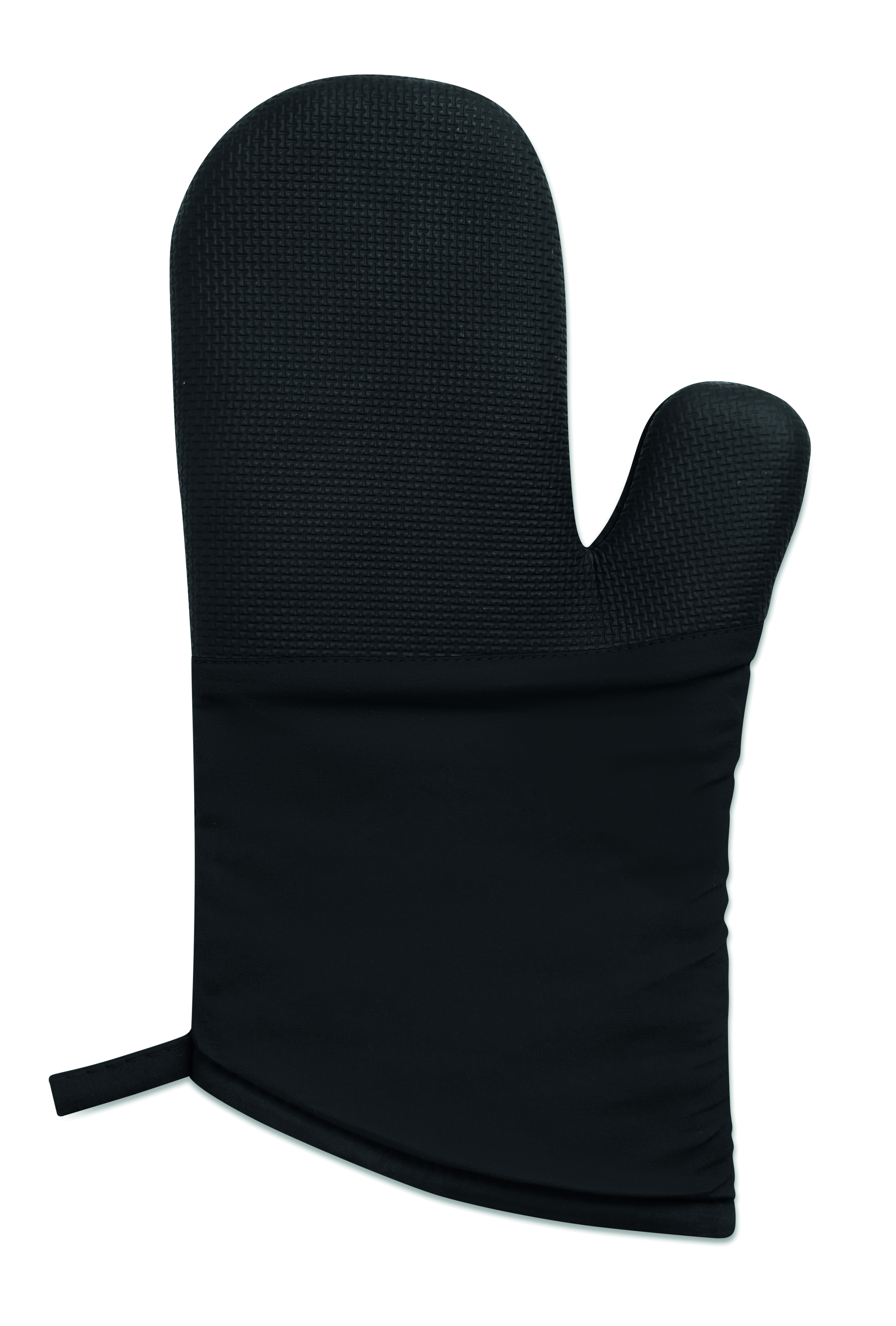 Nützlicher Topfhandschuh aus Baumwolle, mit einer gummierten Seite. EN 407.