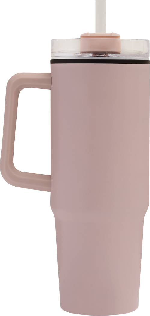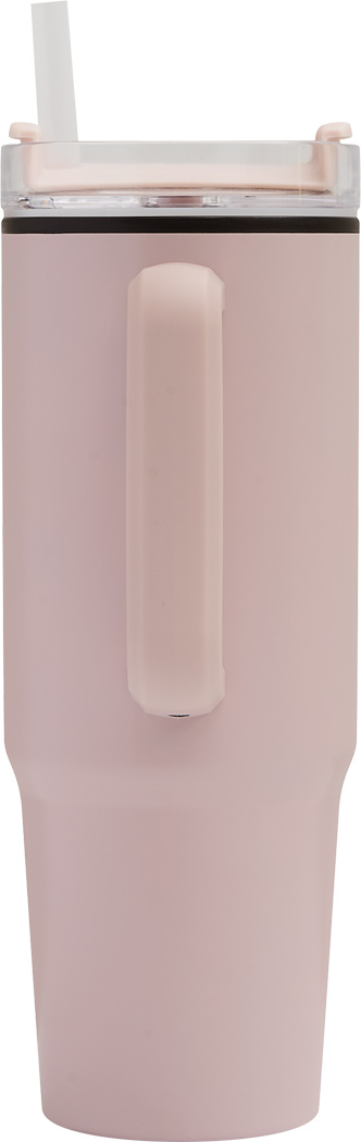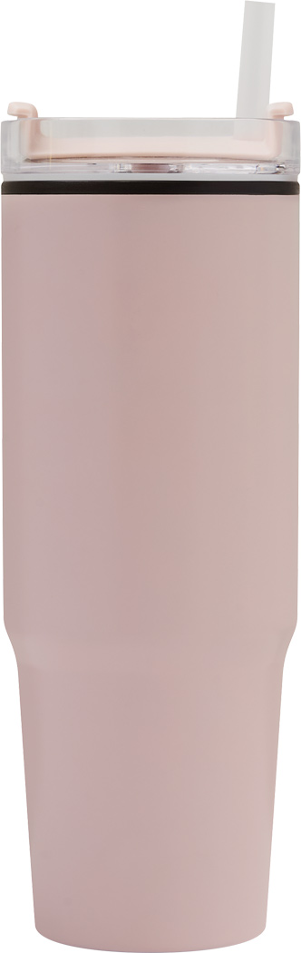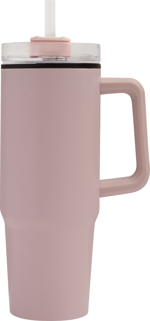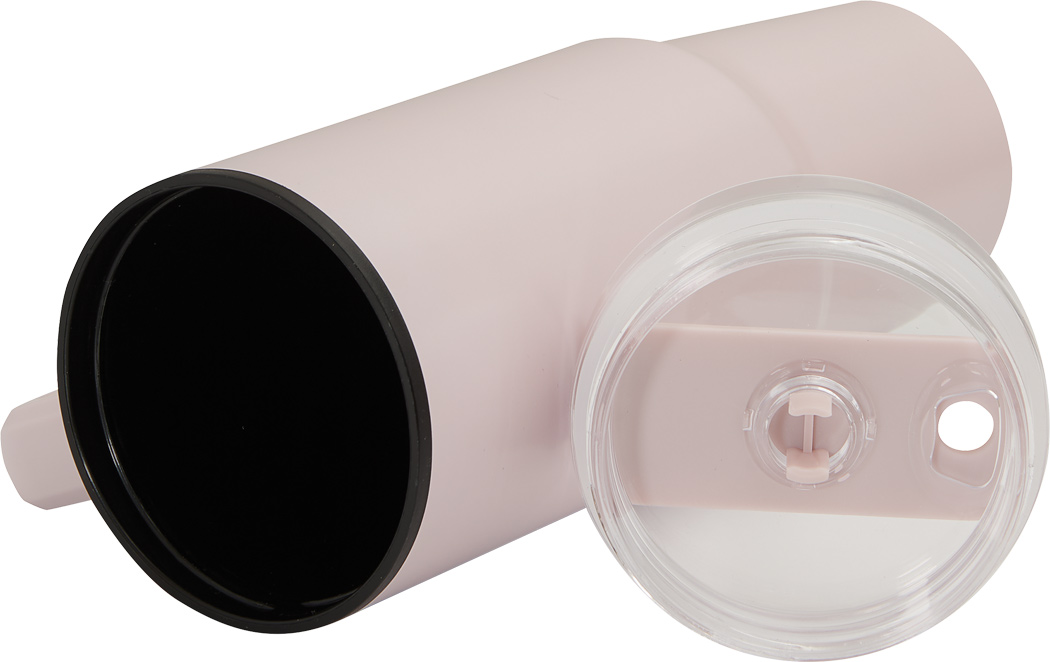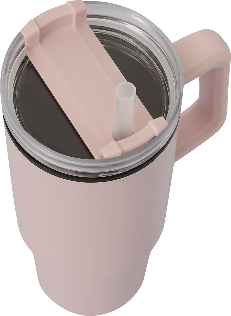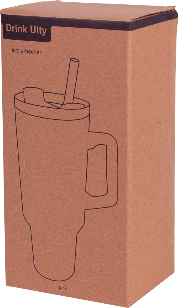 Trinkbecher DRINK ULTY, doppelwandig: innen aus Kunststoff und außen aus Edelstahl, mit praktischem Griff, transparenter Kunststoff-Deckel mit sicherem Schraubverschluss, Silikon-Dichtring, Trinköffnung mit Drehverschluss und transparentem Strohhalm, beschichteter Boden für gute Oberflächenhaftung, Füllmenge ca. 900 ml, hält ca. 2 Stunden warm und bis zu 4 Stunden kalt, in Box