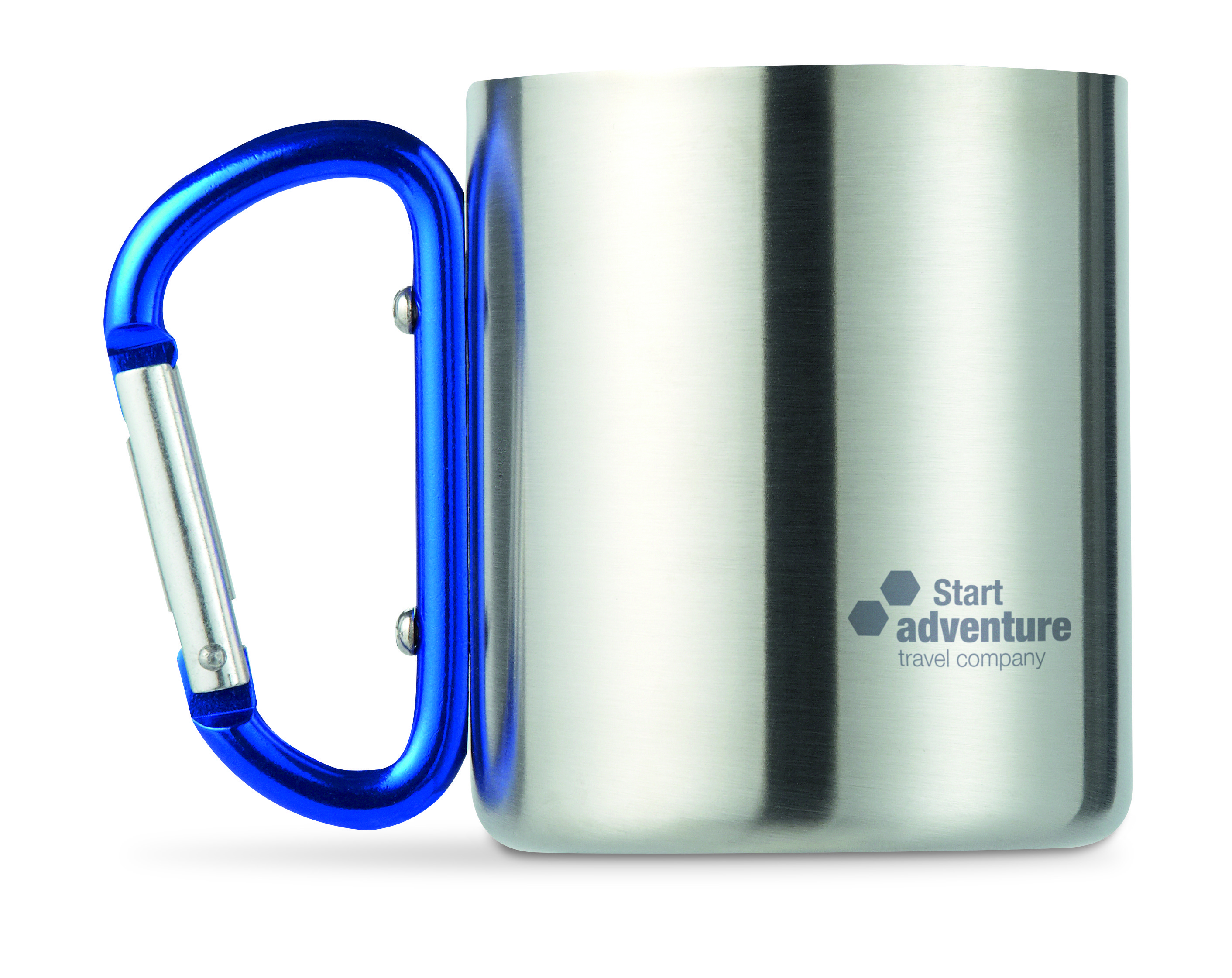 Trinkbecher mit Karabiner TRUMBO mit Firmenlogo für Werbeaktionen.