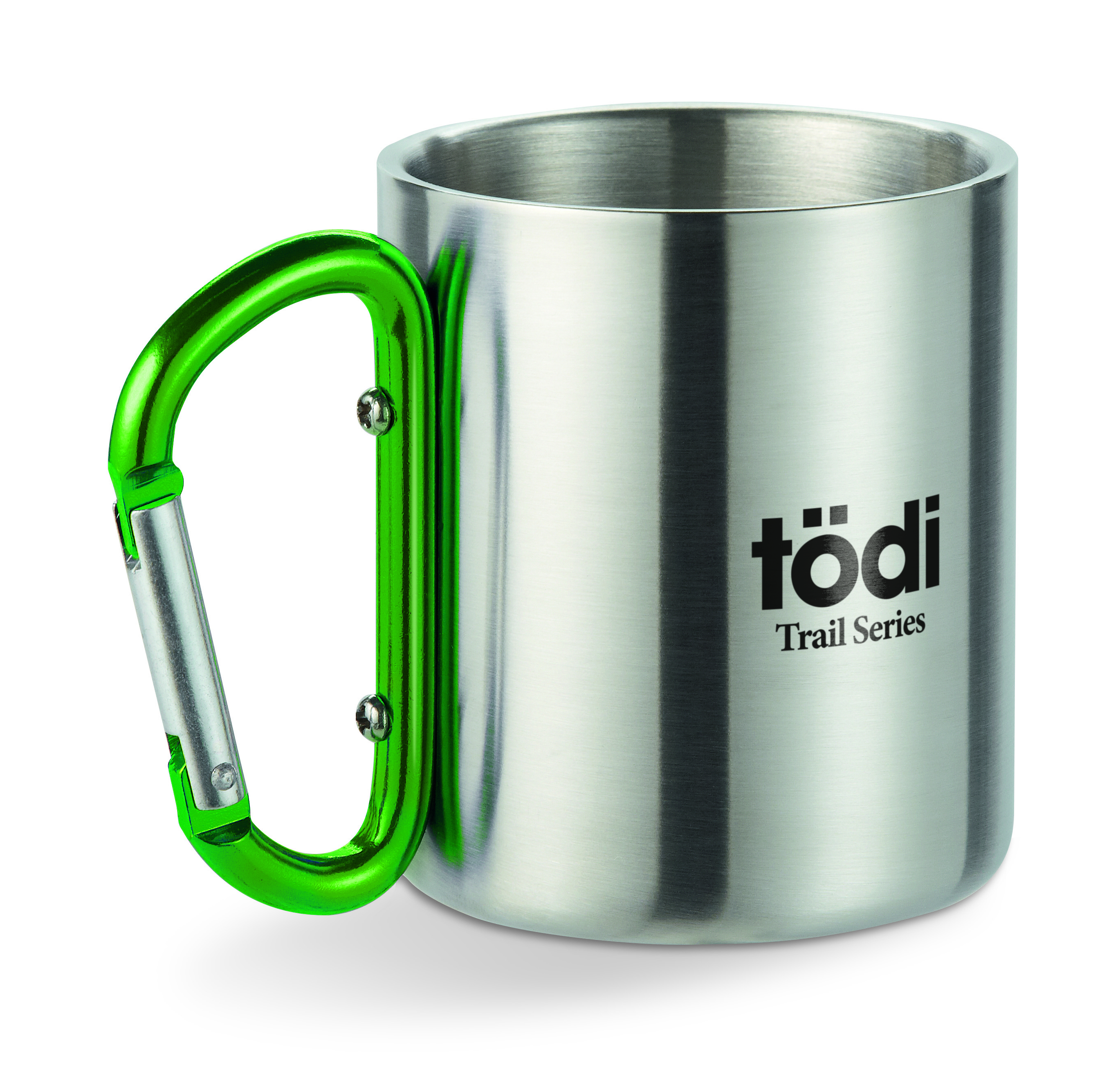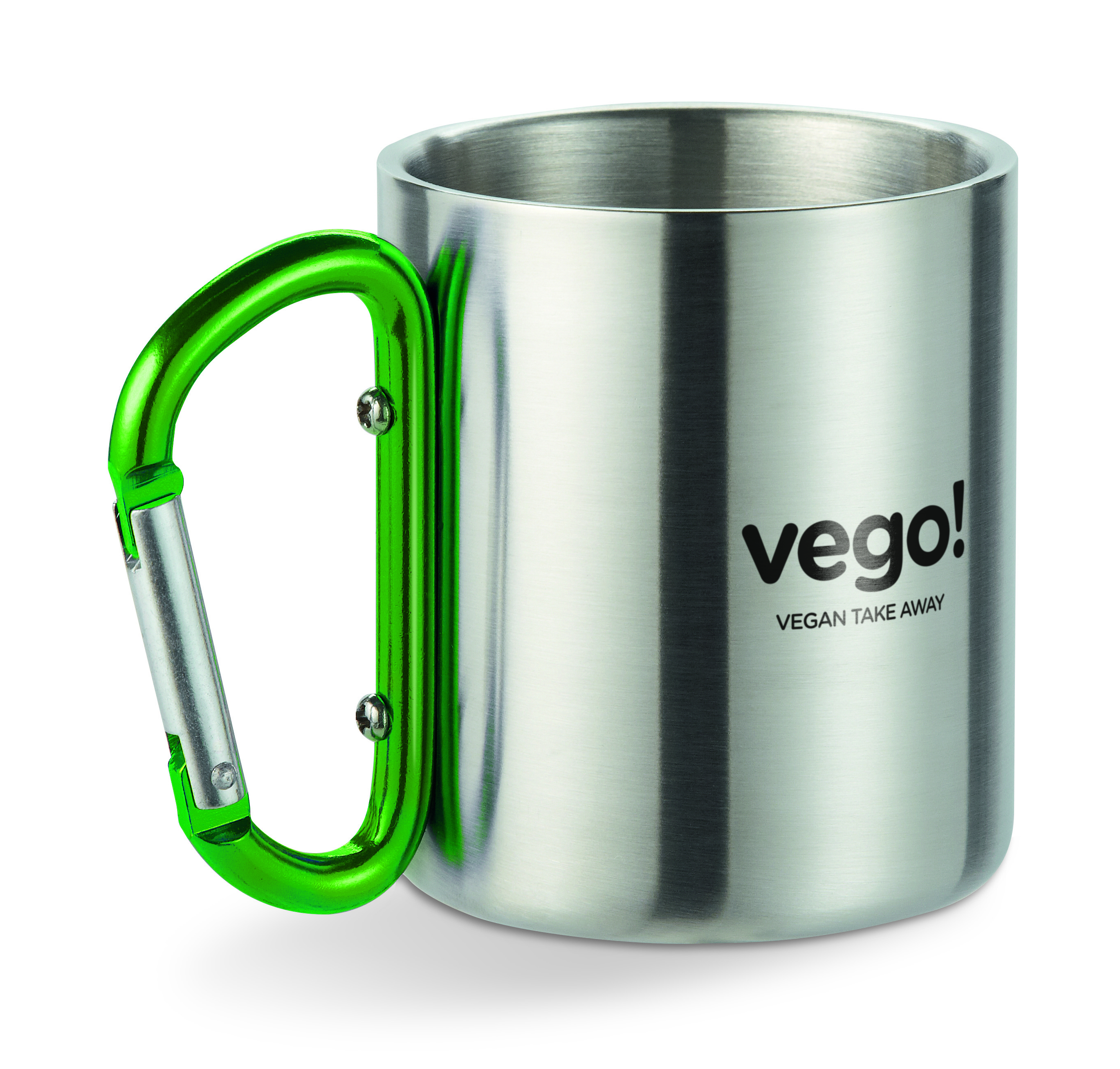 Trinkbecher mit Karabiner TRUMBO als Werbegeschenk mit Logo.