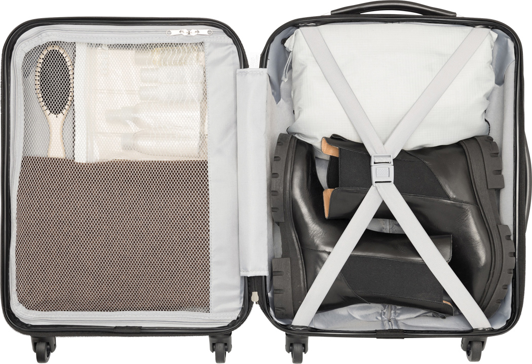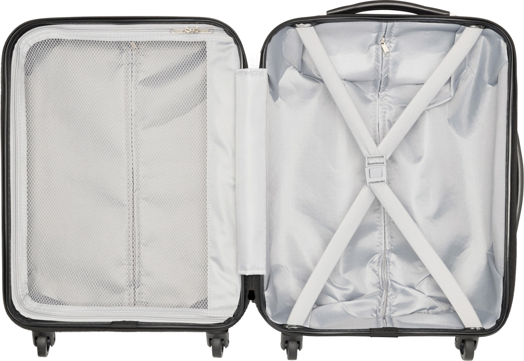 Trolley-Bordcase ST. TROPEZ: beidseitige Packmöglichkeiten, Koffer-Innenraum komplett gefüttert mit Packtrennwand und Packgurt, arretierbares und versenkbares Trolleygestell, 2 Tragegriffe, 4 seitliche Füße, 4-Rollen-360°-Leichtlauf-Fahrwerk, Zahlenkombinationsschloss – boarding size für Low-Budget-Fluglinien geeignet
