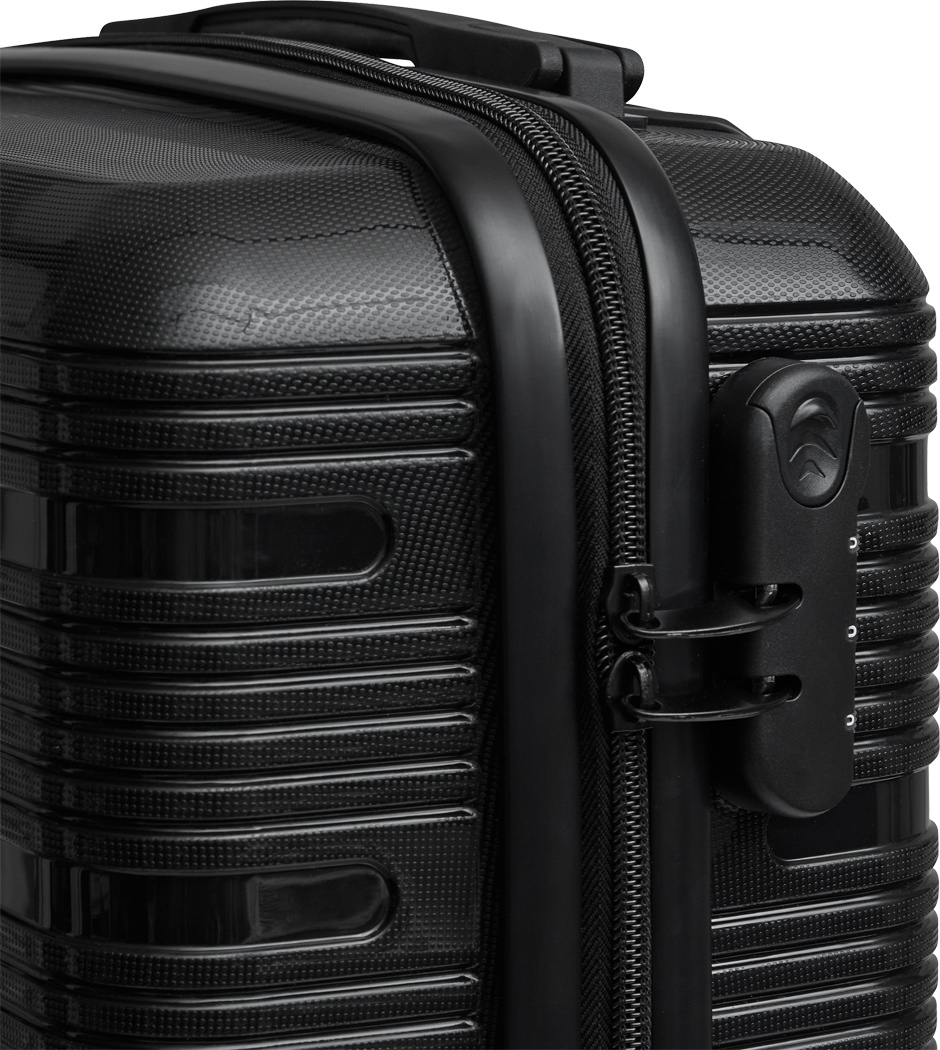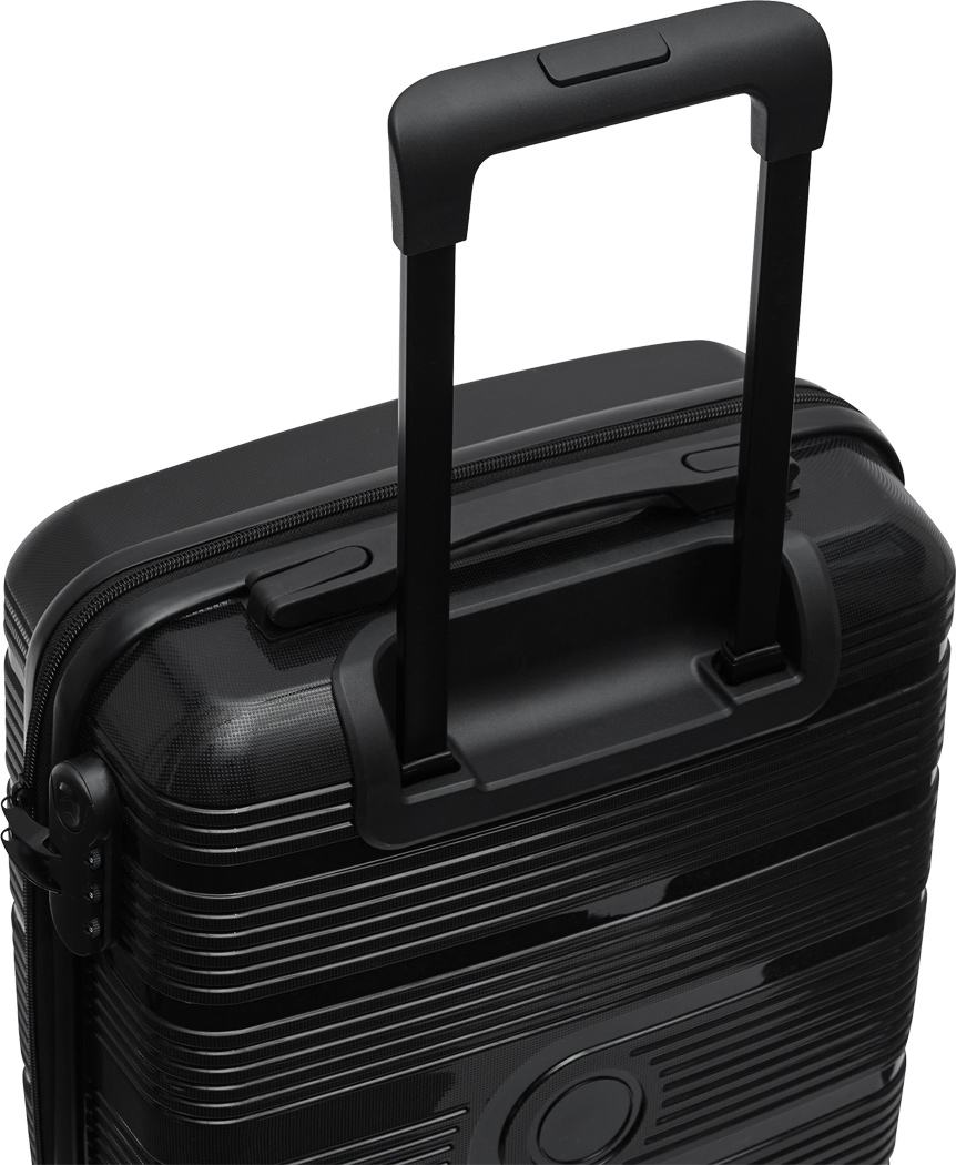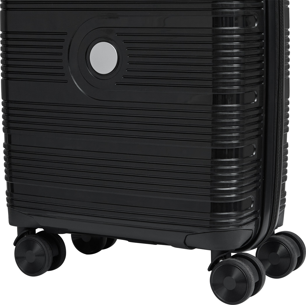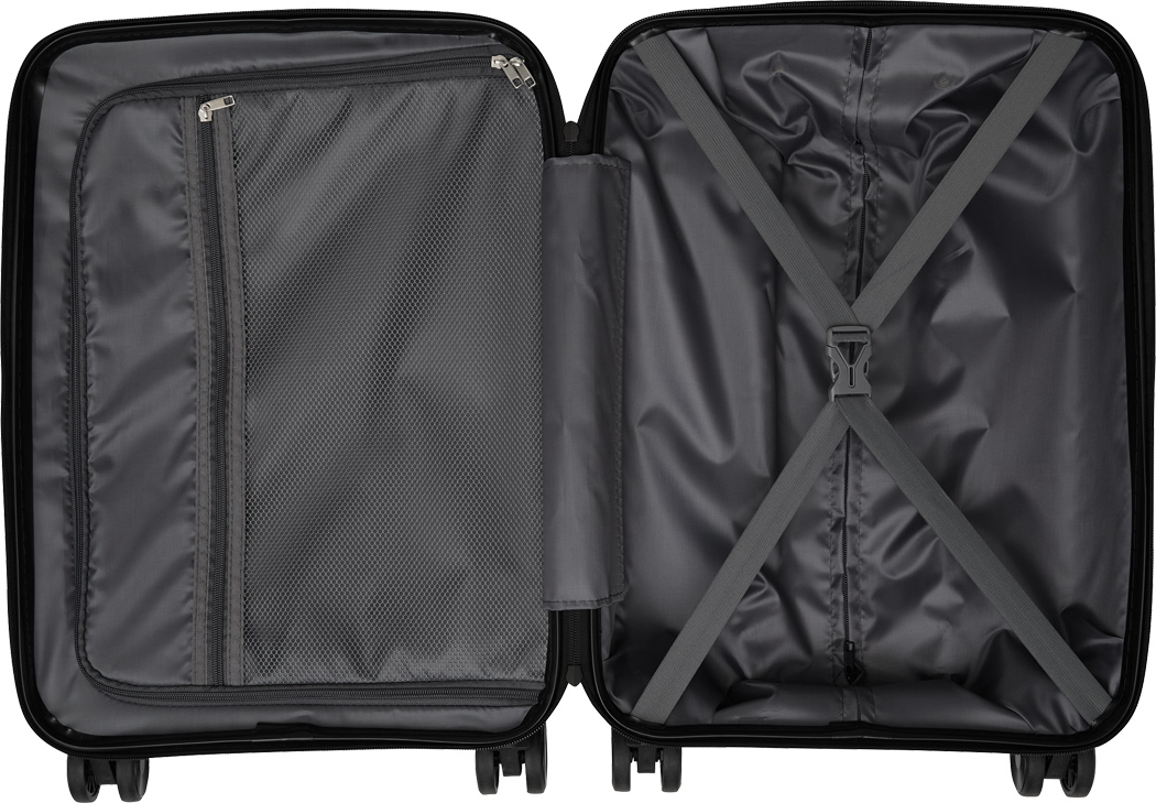 Trolley-Bordcase YORK: aus besonders widerstandsfähigem Material, beidseitige Packmöglichkeit, mit Reißverschluss-Netztasche und elastischem Packgurt, arretierbares und versenkbares Trolleysystem, Tragegriff, 4-Doppelrollen-360°-Leichtlauf-Fahrwerk, austauschbares Metalllogo auf der Vorderseite, Zahlenkombinationsschloss – boarding size für Low-Budget-Fluglinien geeignet