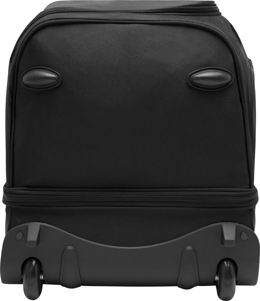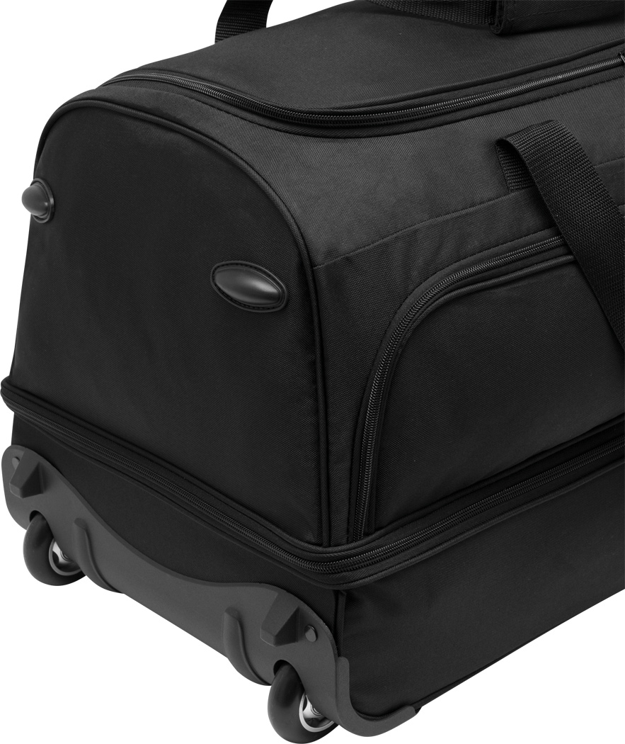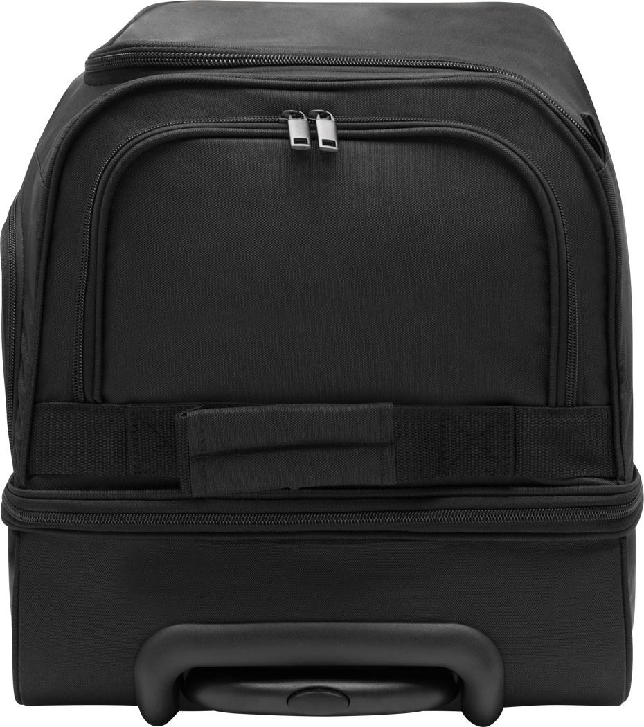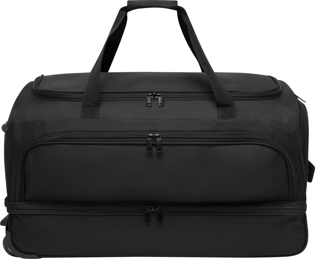 Trolley-Reisetasche BERGEN: 2 Tragegriffe mit Klettverschluss-Verstärkung, 1 Reißverschluss-Vorfach, 2 getrennte Packebenen mit Reißverschluss, 1 seitliches Reißverschluss-Fach, gepolsterter Tragegriff, versenkbares Trolleygestell, 2 Leichtlauf-Skaterrollen mit Kantenschutz, 2 Gleitschienen für Treppentransport und Bodenfüße