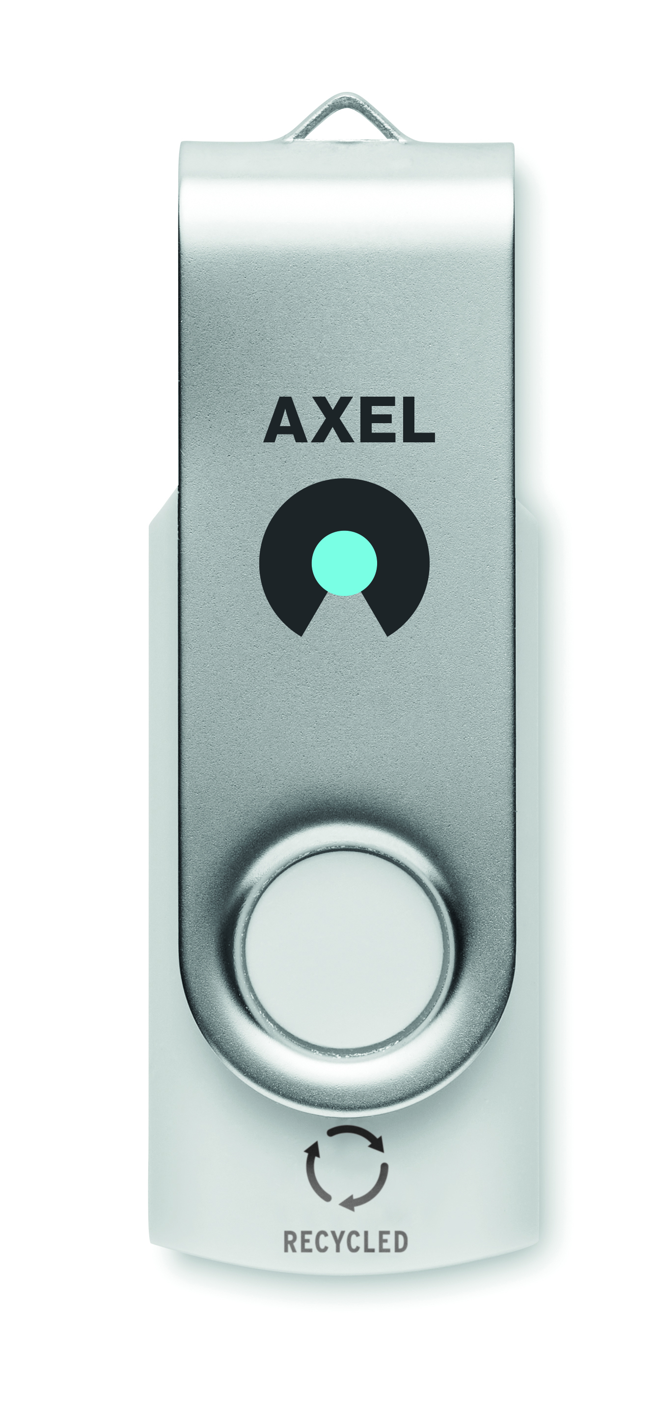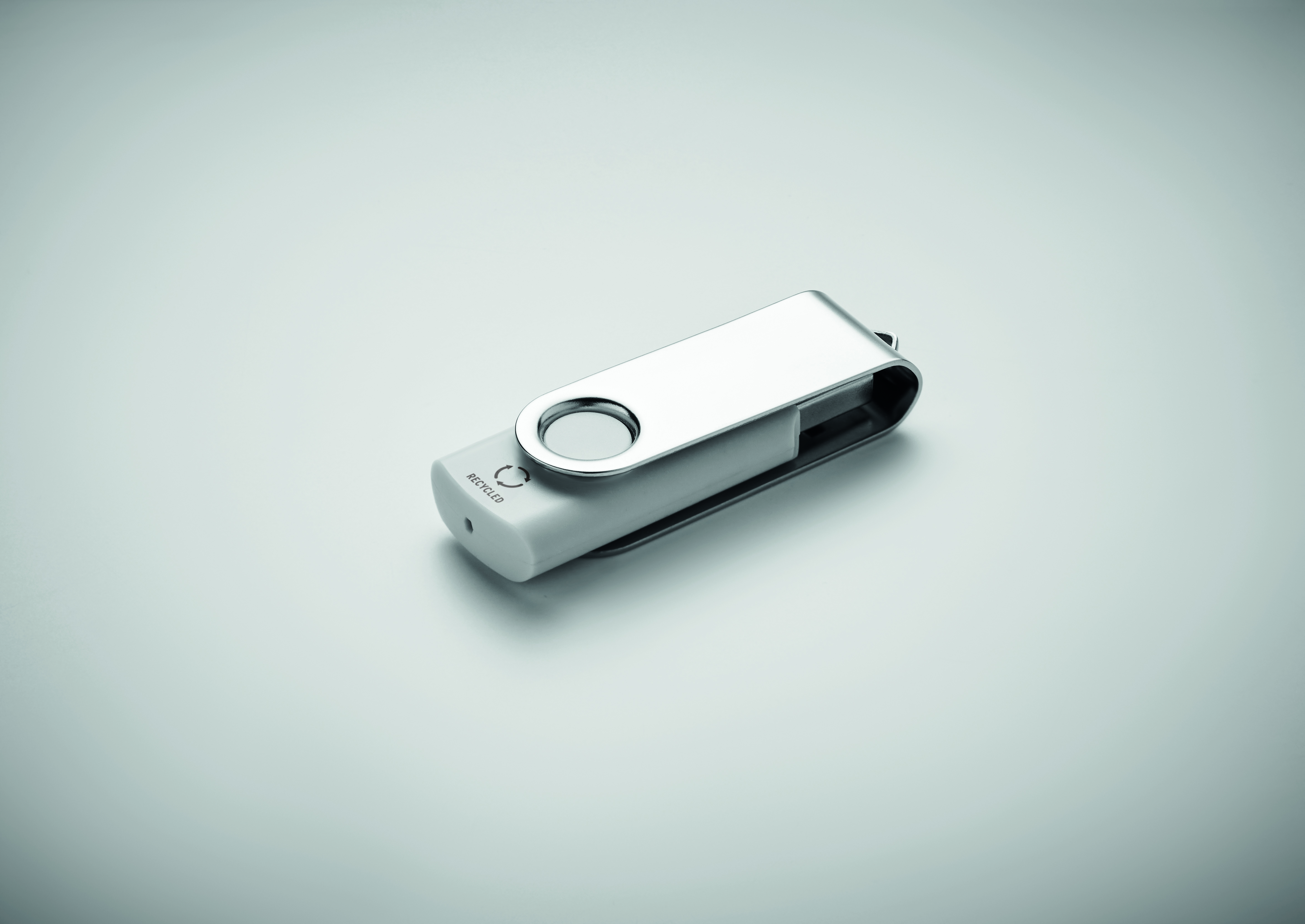 16GB USB-Stick im Gehäuse aus recyceltem ABS. Mit drehbarer Abdeckung aus Metall.