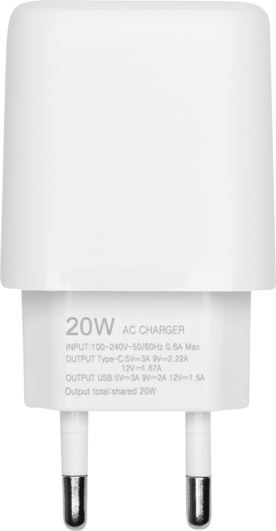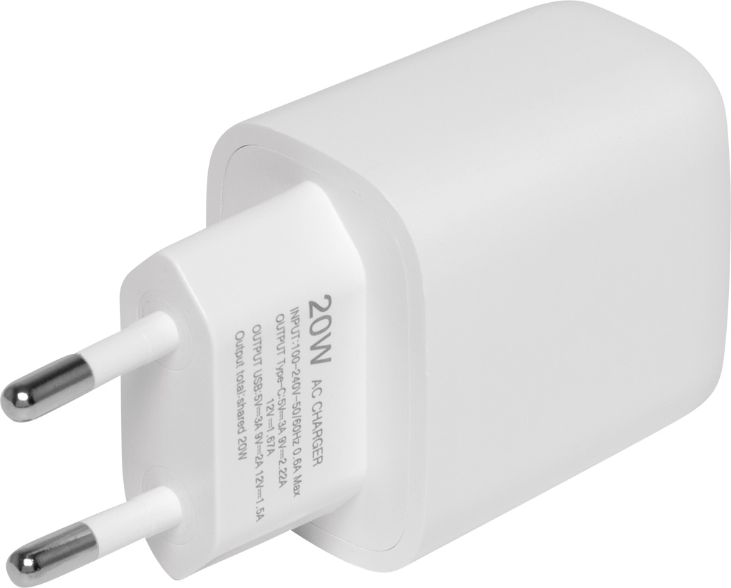 USB-Adapter-Stecker-Netzteil ENDLESS POWER: 1 Port USB A und 1 Port USB Typ C, Gesamt-Ausgangsleistung max. 20W