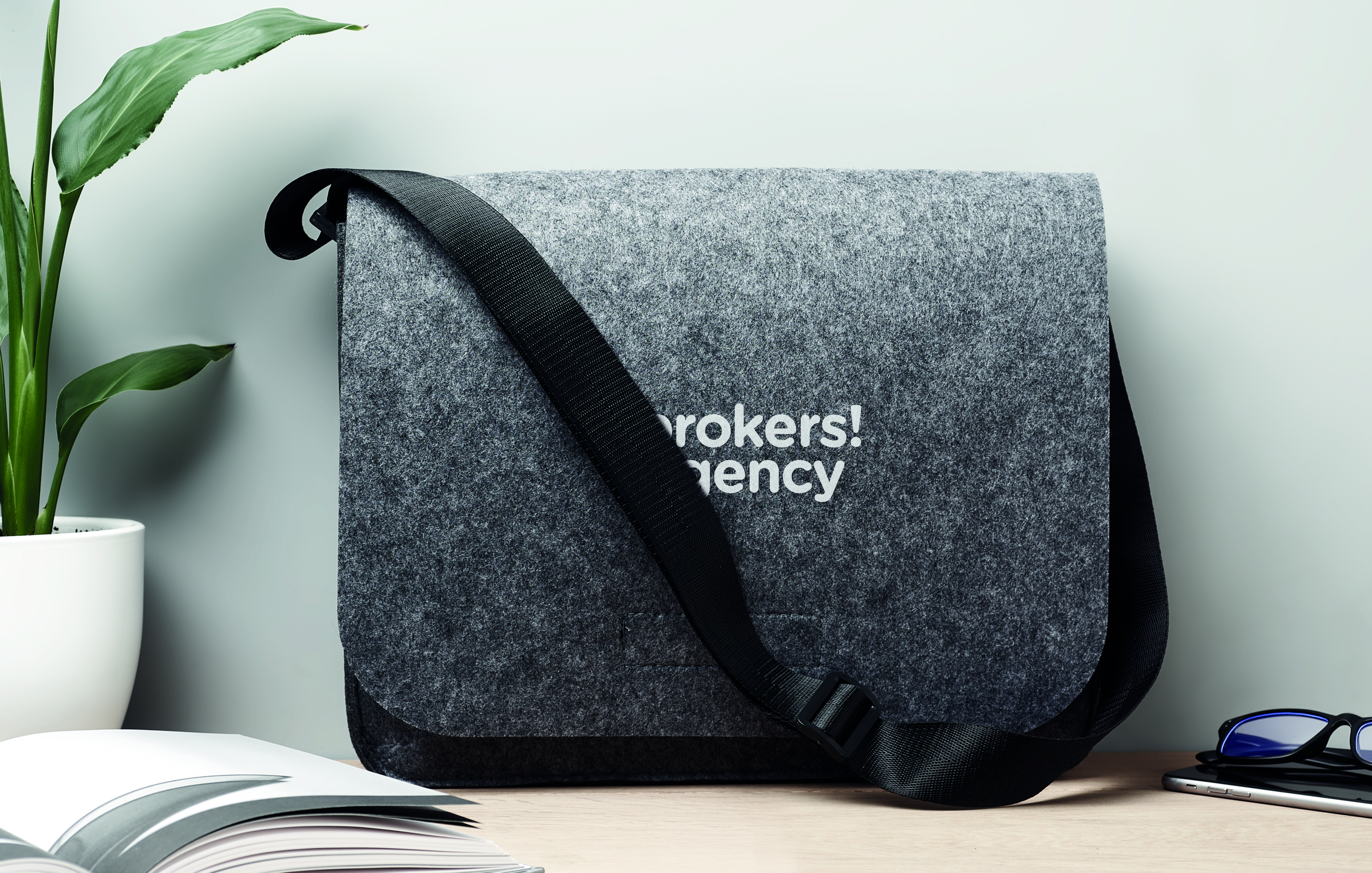 Umhängetasche aus RPET-Filz BAGLO mit Firmenlogo für Promotions.