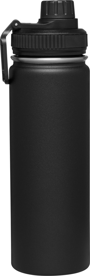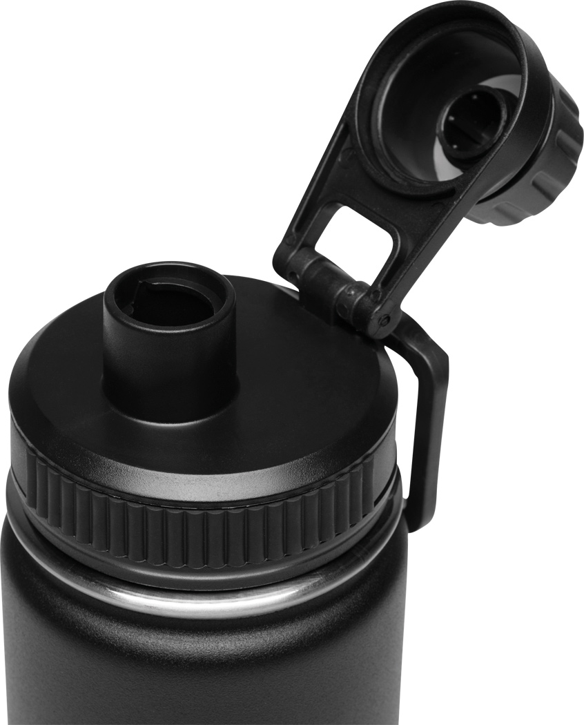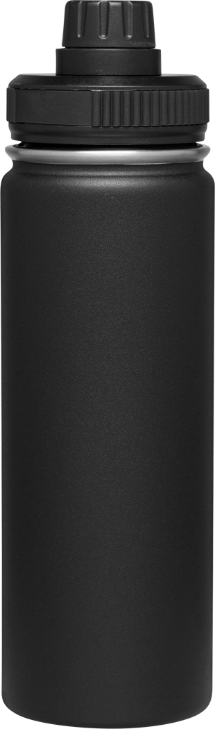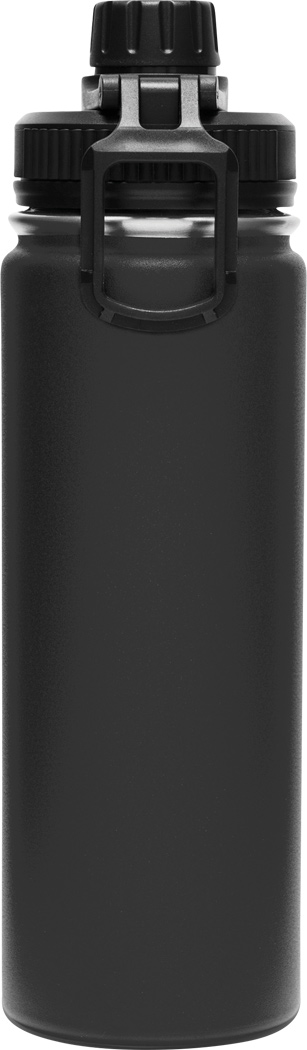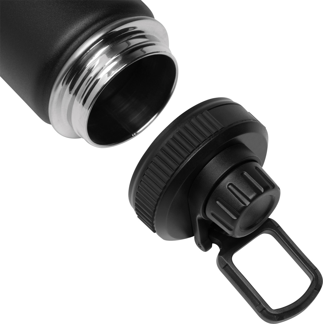 Vakuum-Isolierflasche ARMY STYLE, doppelwandig: außen und innen aus Edelstahl, Pulverlackierung, schwarzer Kunststoff-Deckel mit sicherem Schraubverschluss, Silikon-Dichtring und integrierter verschraubbarer Trinköffnung, Tragegriff, Füllmenge: ca. 600 ml, hält ca. 8 Stunden warm und bis zu 12 Stunden kalt