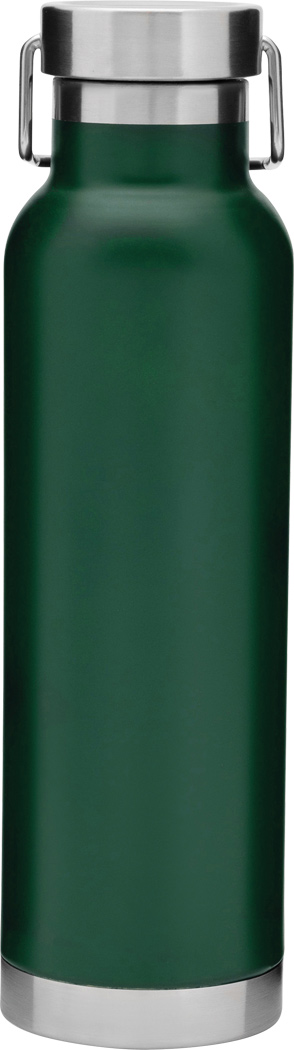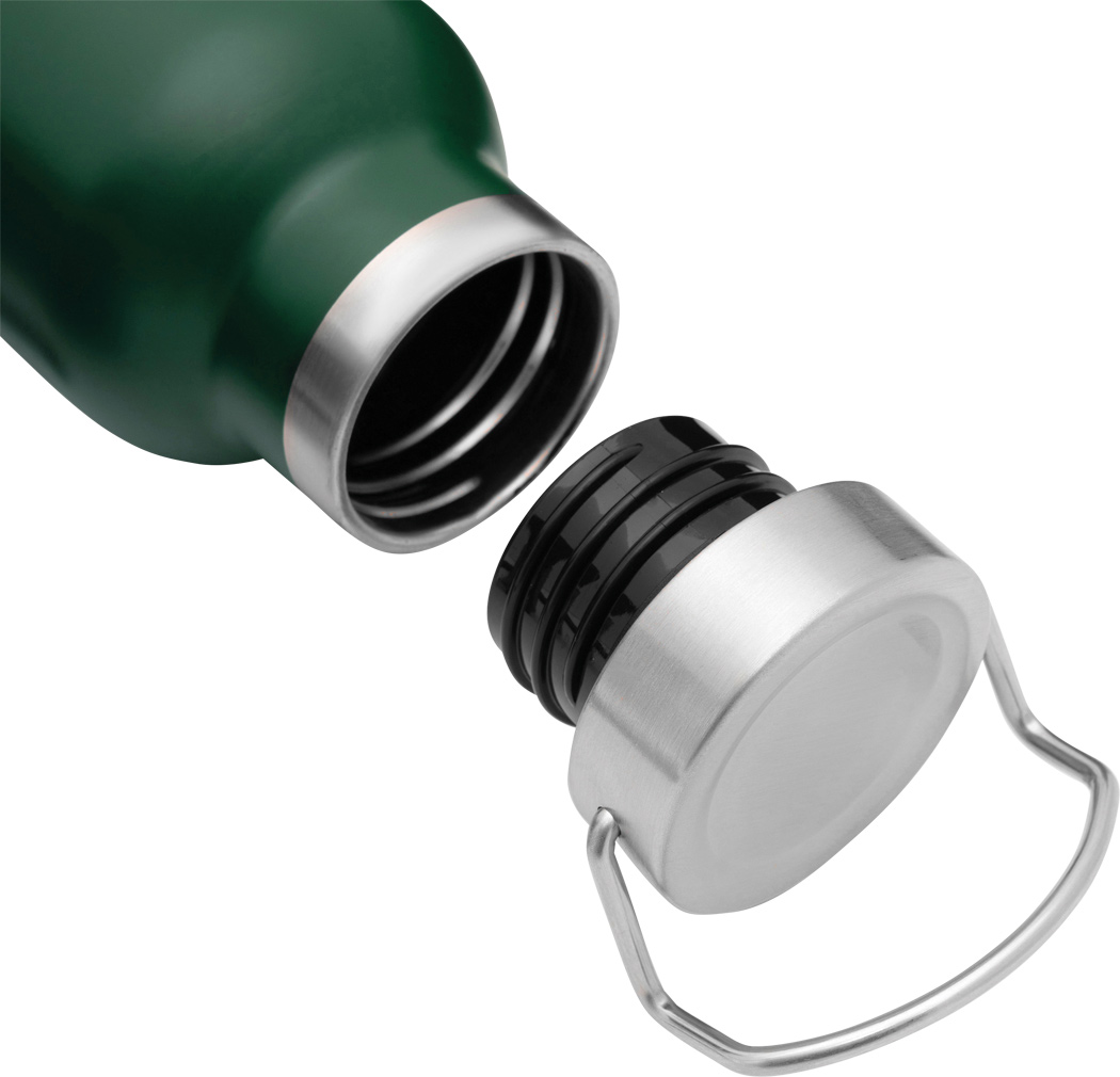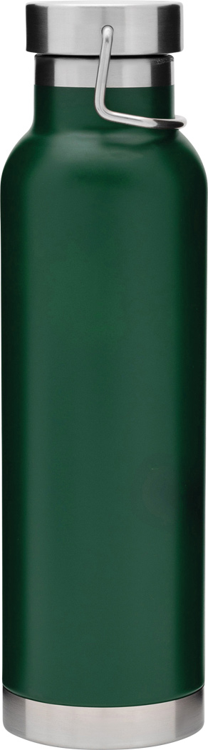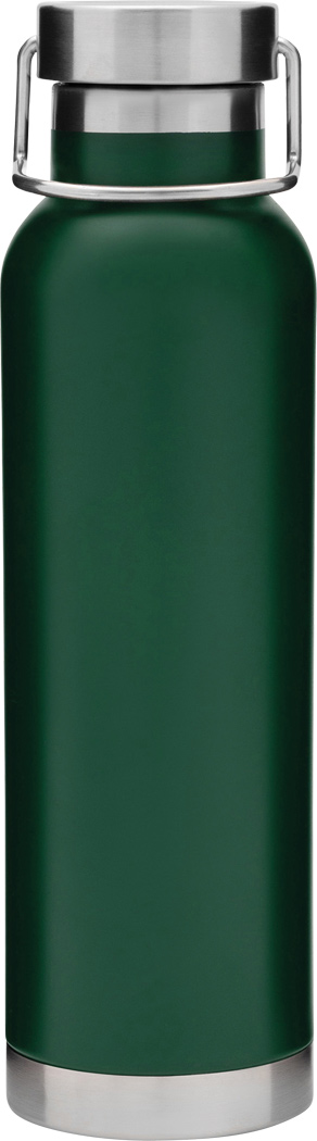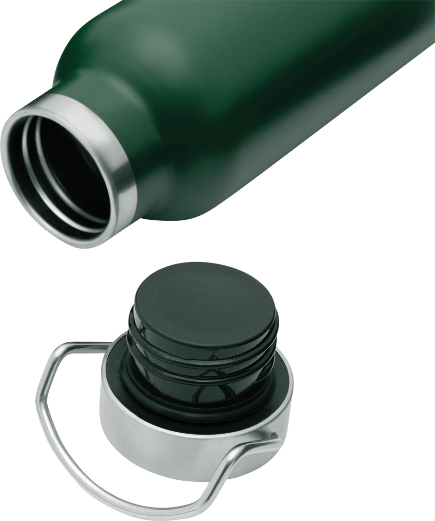 Vakuum-Isolierflasche MILITARY, doppelwandig: mit Kupfer-Isolierung, innen und außen aus Edelstahl, silberner Deckel mit Schraubverschluss, Silikon-Dichtring und Tragegiff, Füllmenge ca. 650 ml, hält ca. 12 Stunden warm und bis zu 24 Stunden kalt, in Box