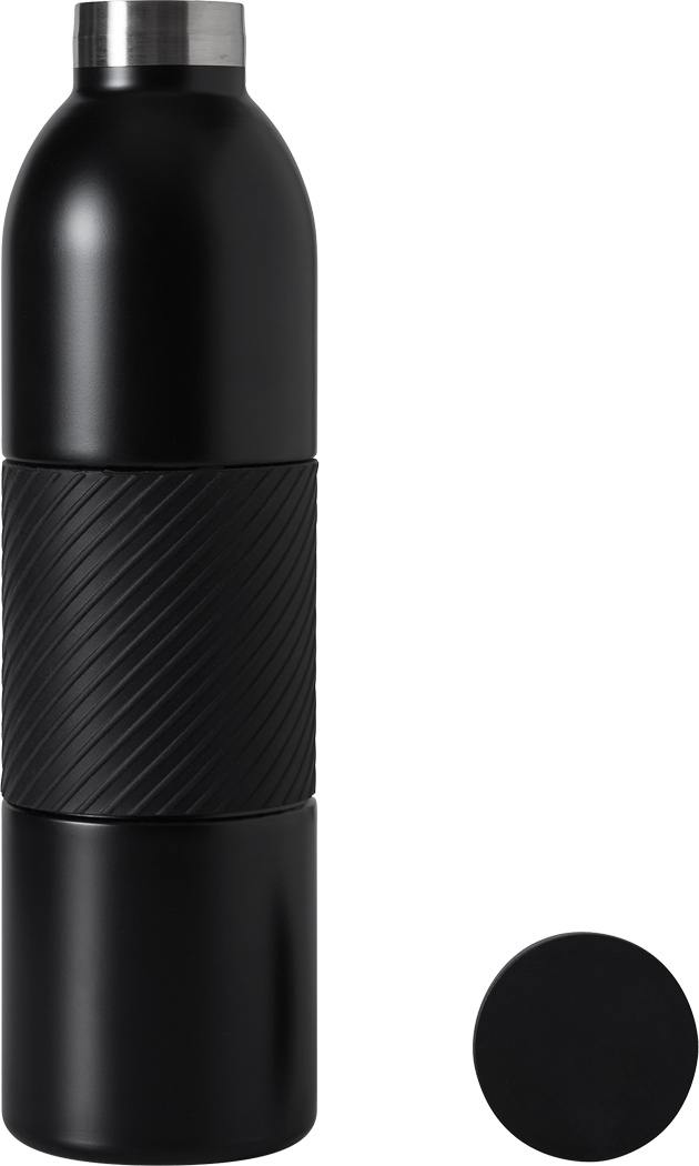 Vakuum-Isolierflasche VACUGRIP, doppelwandig: innen und außen aus Edelstahl, farbig passender Kunststoffdeckel mit sicherem Schraubverschluss, Silikon-Manschette für optimale Griffigkeit, Füllmenge: ca. 600 ml, hält ca. 8 Stunden warm und 12 Stunden kalt