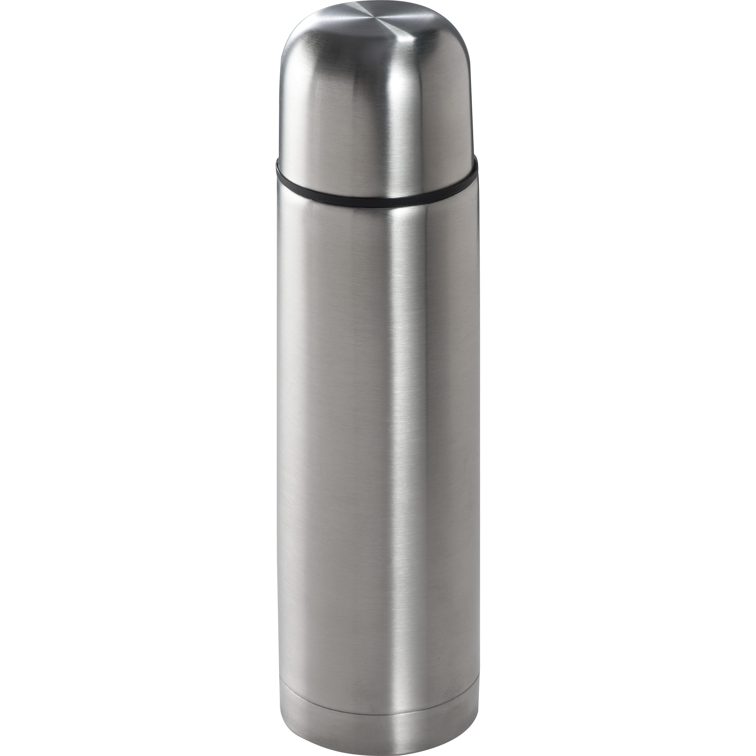Doppelwandige Vakuum Isolierkanne aus Edelstahl mit 500ml Fassungsvermögen, Schnellverschluss und Metallbecher. Ihre Werbung lasern wir auf die Kanne.