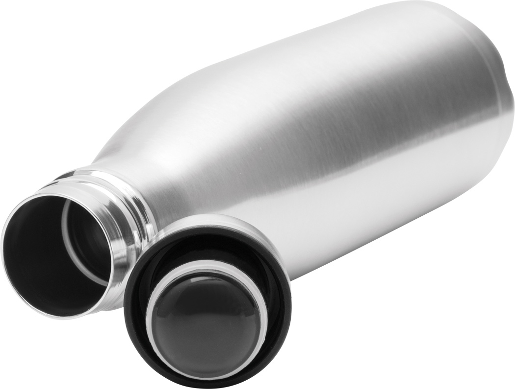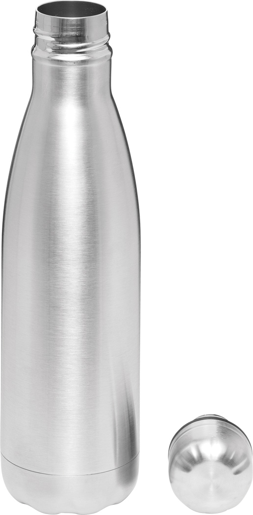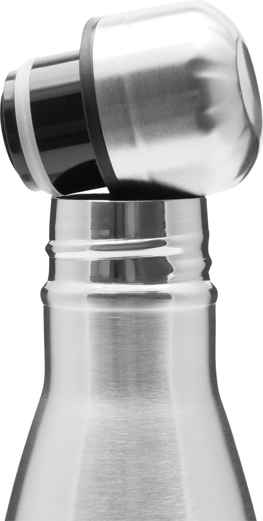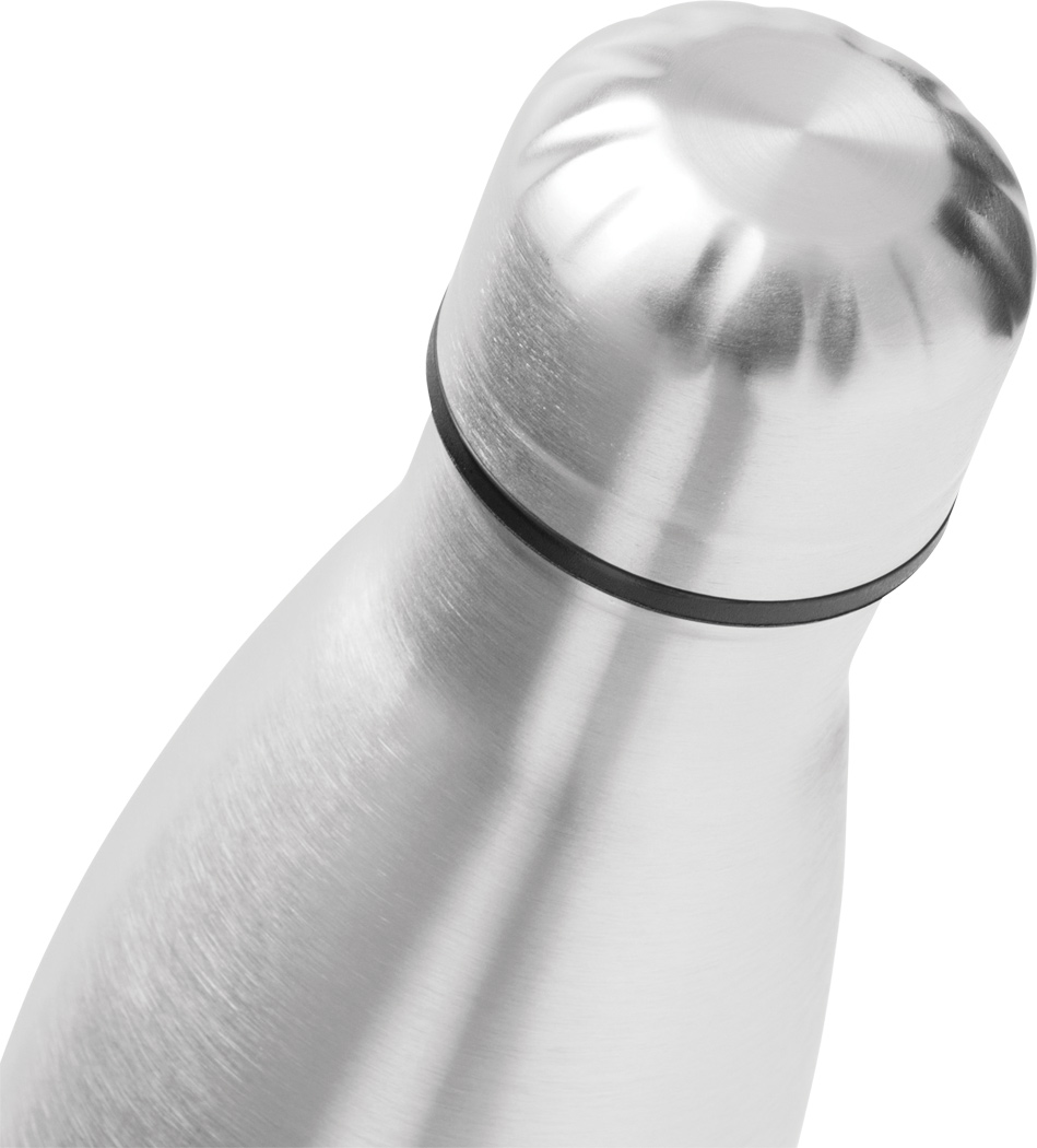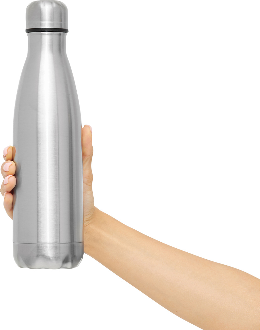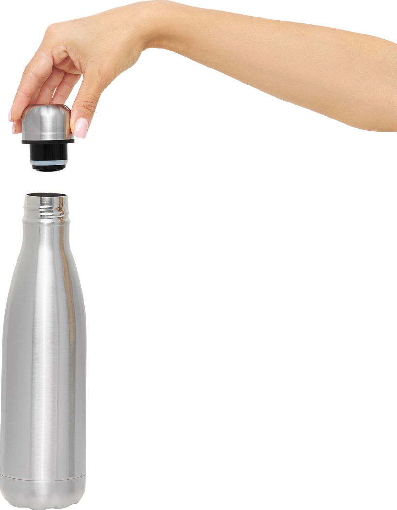 Vakuum-Trinkflasche GOLDEN TASTE, doppelwandig: außen und innen aus Edelstahl, silberner Deckel mit sicherem Schraubverschluss und Silikon-Dichtring, Füllmenge: ca. 500 ml, hält ca. 8 Stunden warm und bis zu 12 Stunden kalt, in Box