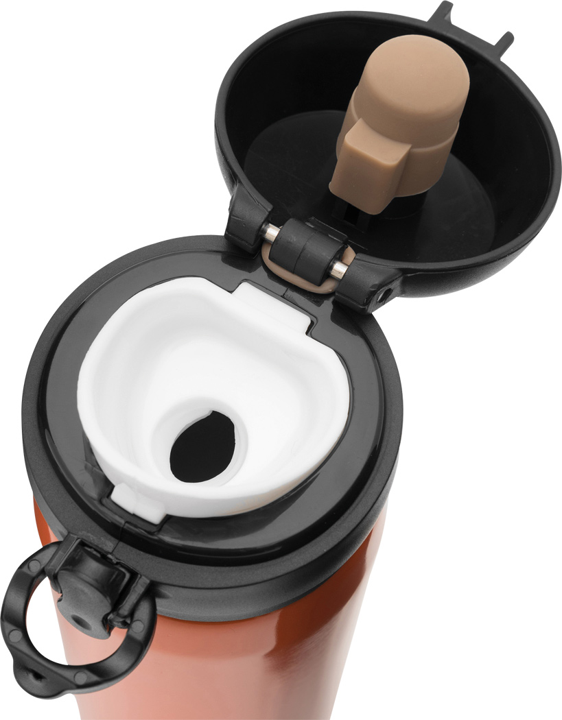 Vakuum-Trinkflasche OOLONG, doppelwandig,: innen und außen aus Edelstahl, Kunststoff-Deckel mit Klappverschluss, Sicherheitsverriegelung, integrierter Trinköffnung, Füllmenge ca. 400 ml, halt ca. 6 Stunden warm und bis zu 12 Stunden kalt, in Box