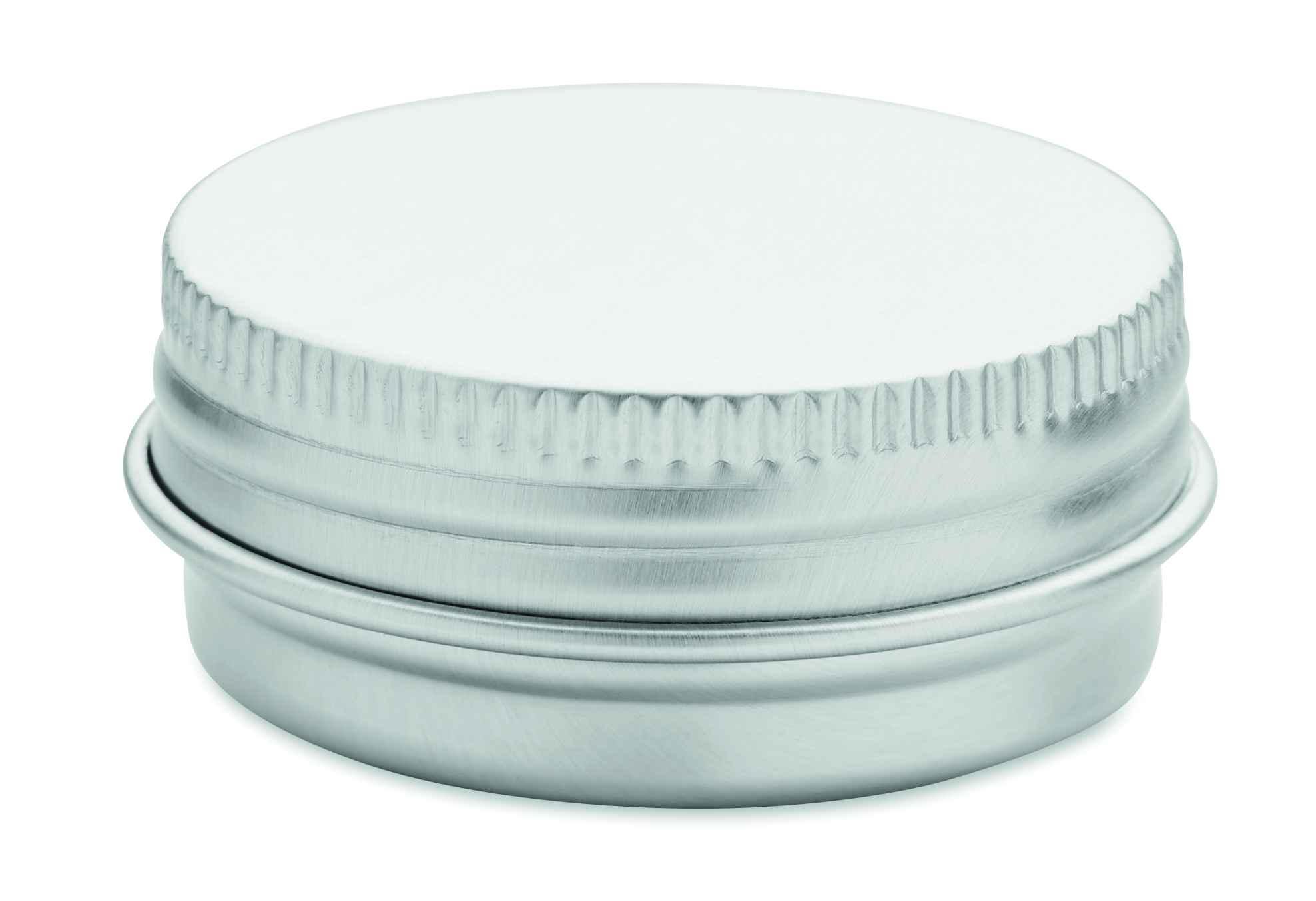 Veganer Lippenbalsam in runder Dose aus Aluminium mit Schraubverschluss. Dermatologisch getestet. SPF10. Aroma: Vanille.