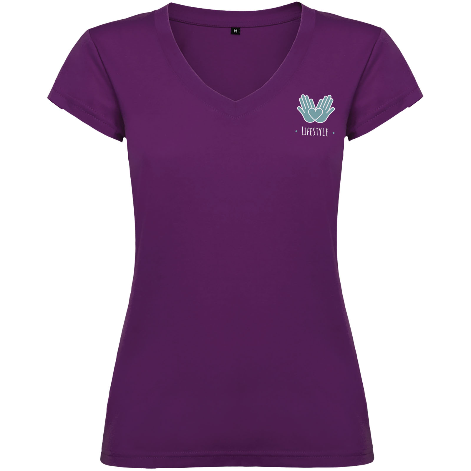 Victoria T-Shirt mit V-Ausschnitt für Damen mit Firmenlogo für Promotions.