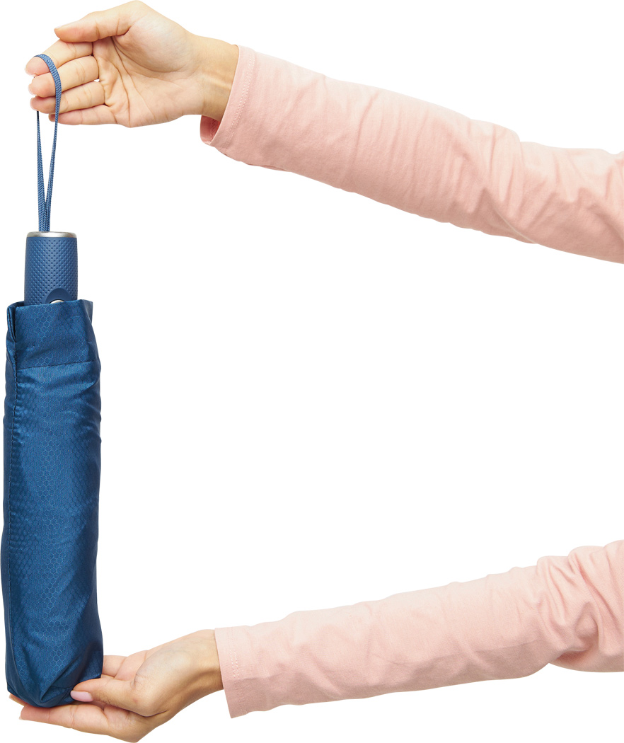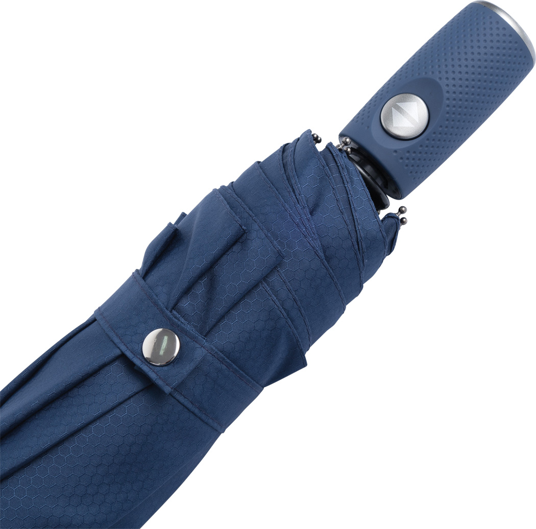 Vollautomatischer Windproof-Taschenschirm ORIANA, in farblich abgestimmter Hülle: 3-teiliger Metallstock, mit Metall- / Kunststoff- / Fiberglasspeichen, Metalltips, gummierter und farblich abgestimmter Griff mit Handschlaufe, Polyester-Bespannung und -Hülle mit Wabenstruktur, Druckknopfverschluss