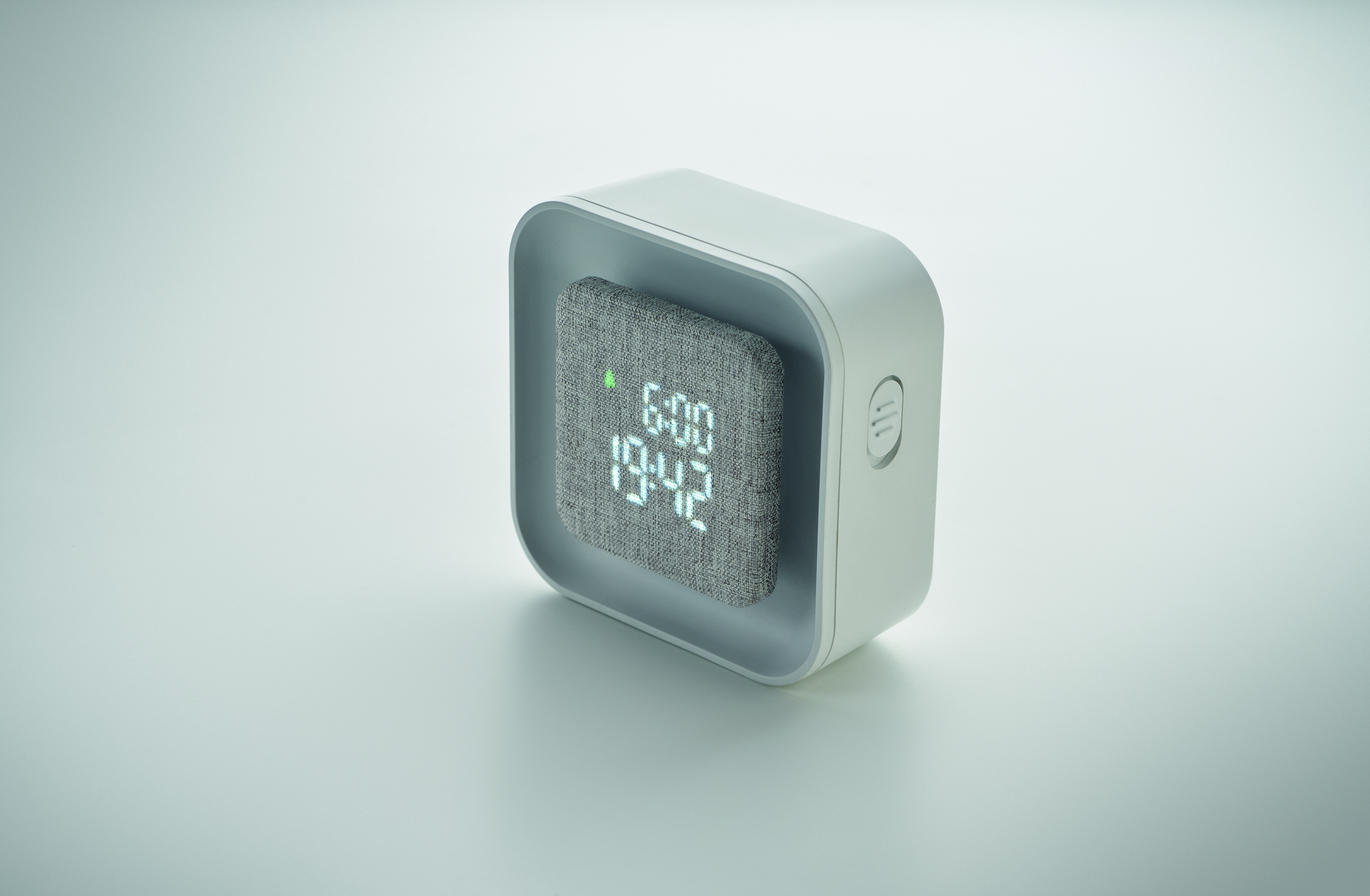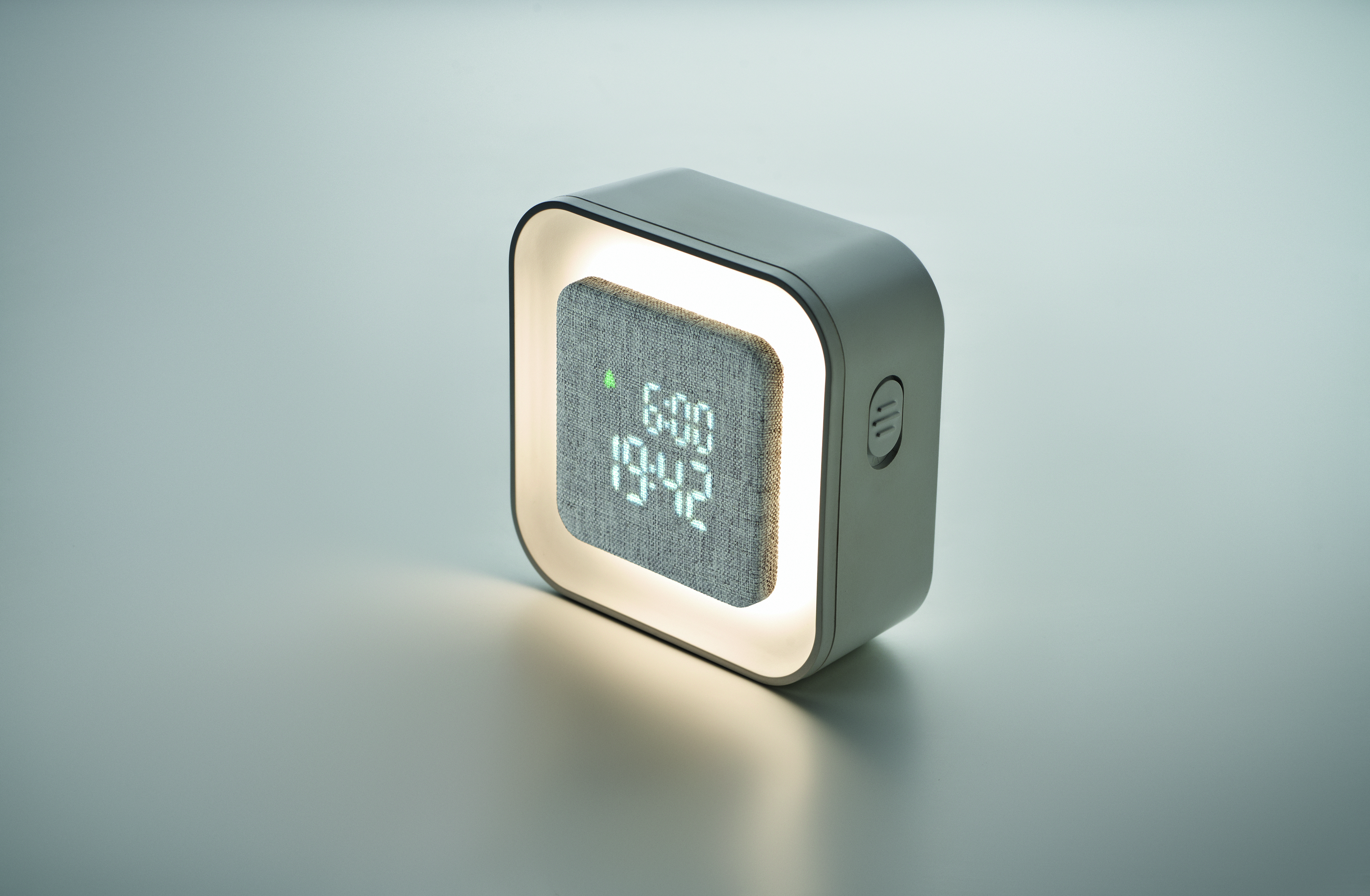 Wecker aus recyceltem ABS / RPET LUCE mit individuellem Aufdruck für Firmen.