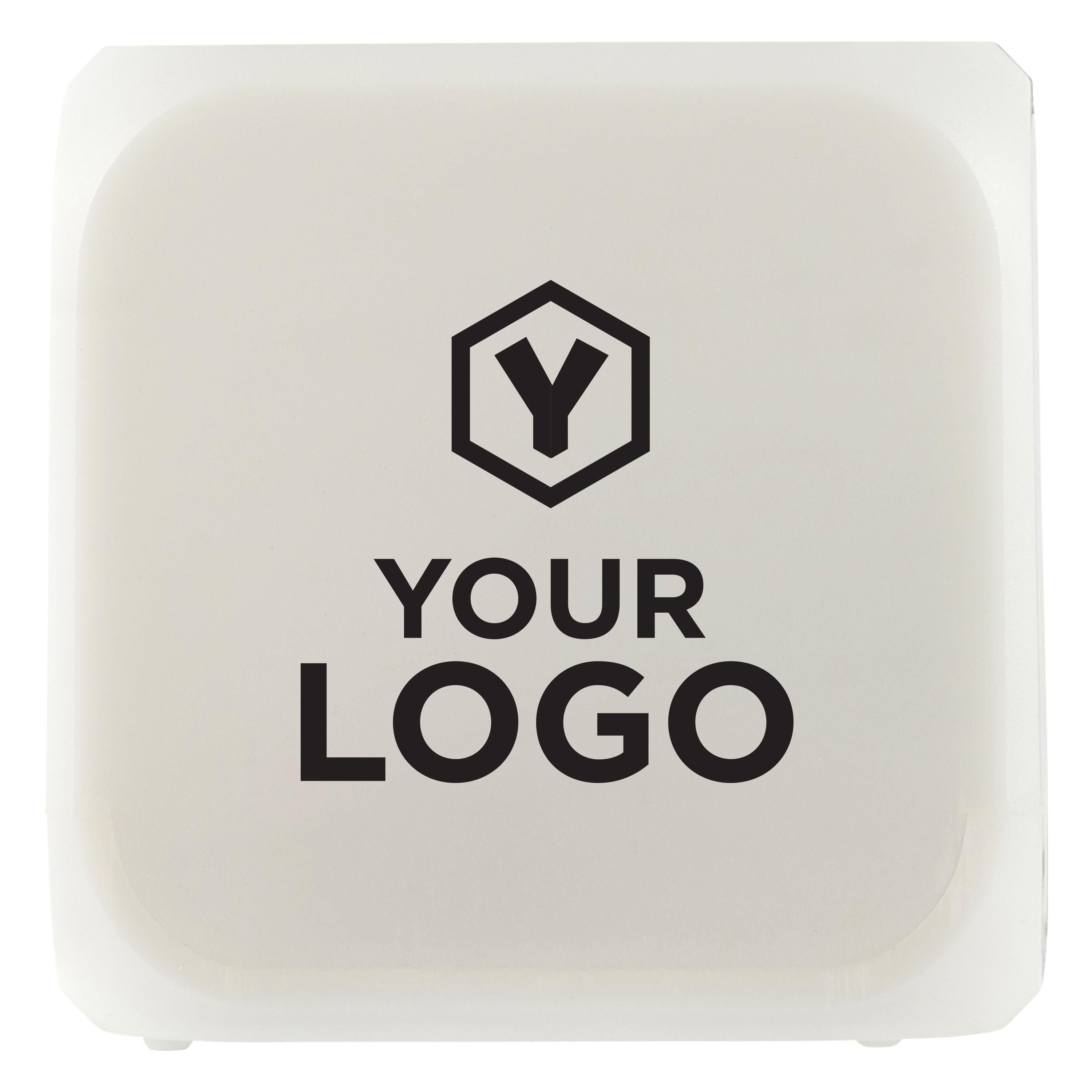 Wecker in Würfel-Form Leona mit Logo für Neukundengewinnung.
