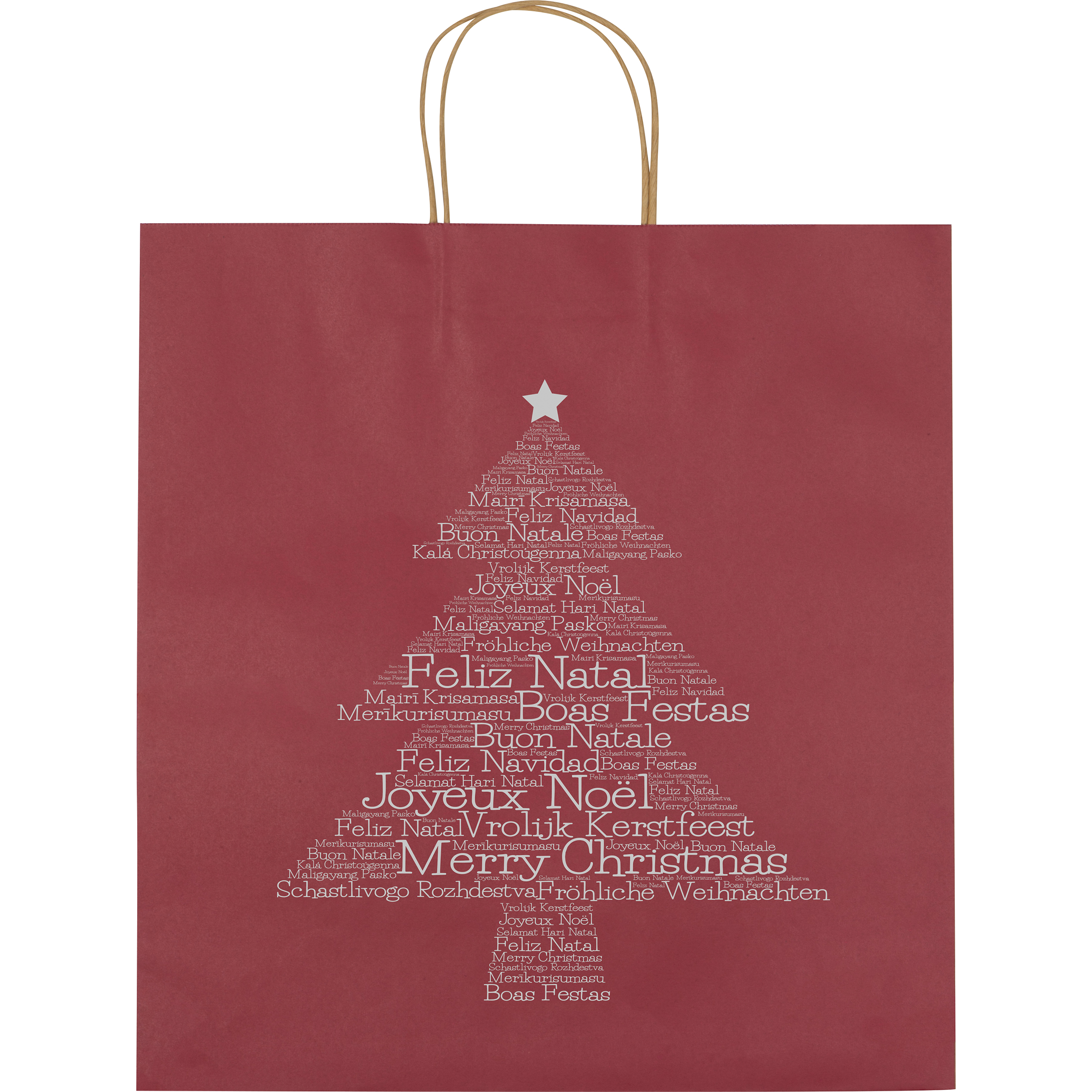 Große Weihnachtstasche aus recyceltem Papier mit weihnachtlichem Motiv. Ihre Werbung drucken wir auf die Rückseite.