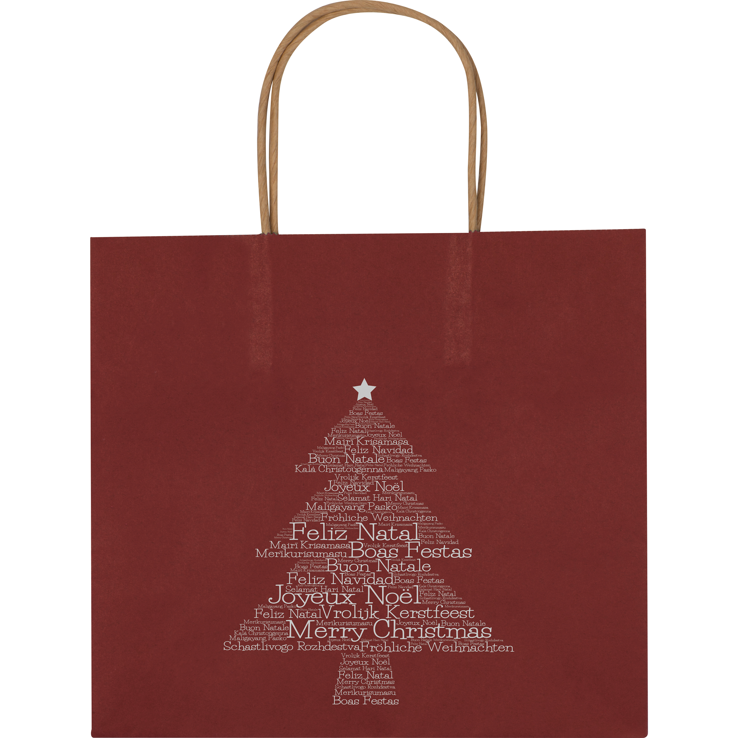 Kleine Weihnachtstasche aus recyceltem Papier mit weihnachtlichem Motiv. Ihre Werbung drucken wir auf die Rückseite.