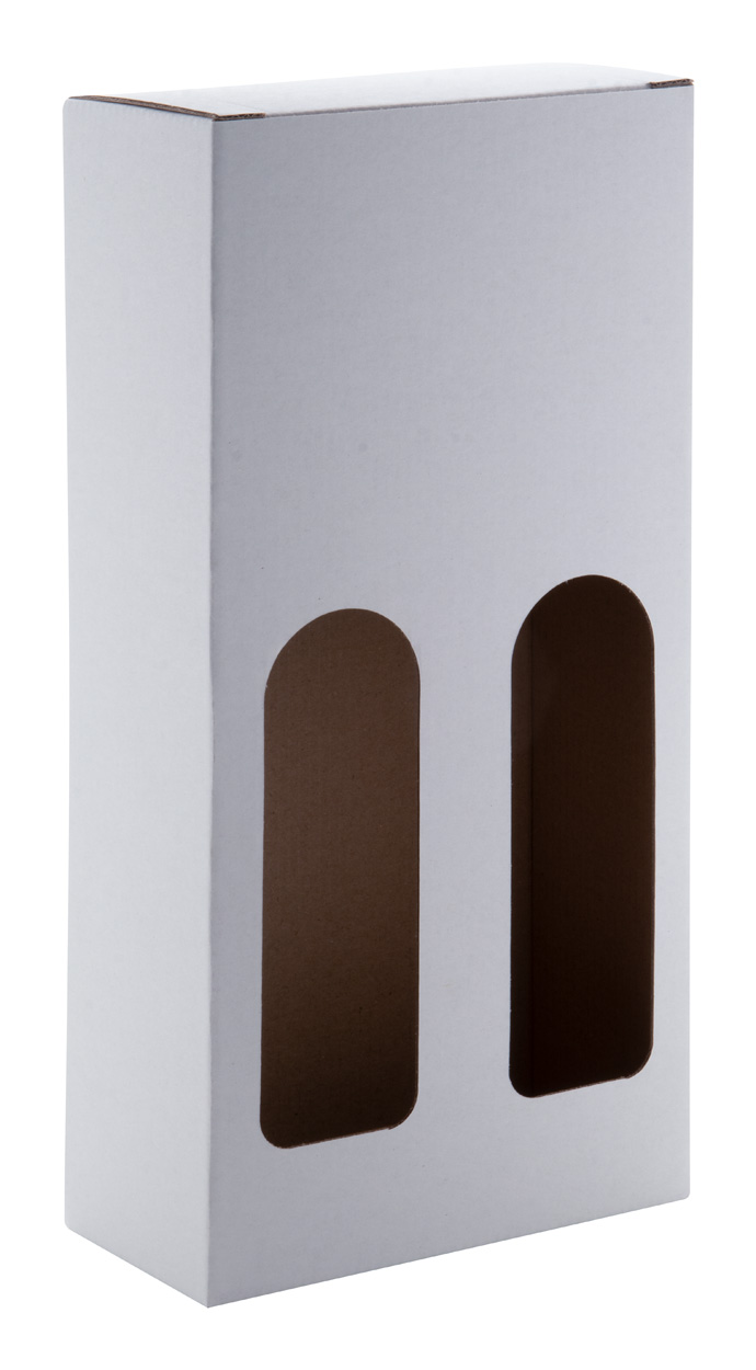 Individuelle Weinflaschenbox aus Wellpappe mit vollfarbiger Bedruckung auf der Außenseite. Passend für zwei 0,75 l Weinflaschen. Die Lieferung erfolgt flach verpackt, exklusive Wein. Mindestmenge: 50 Stk.