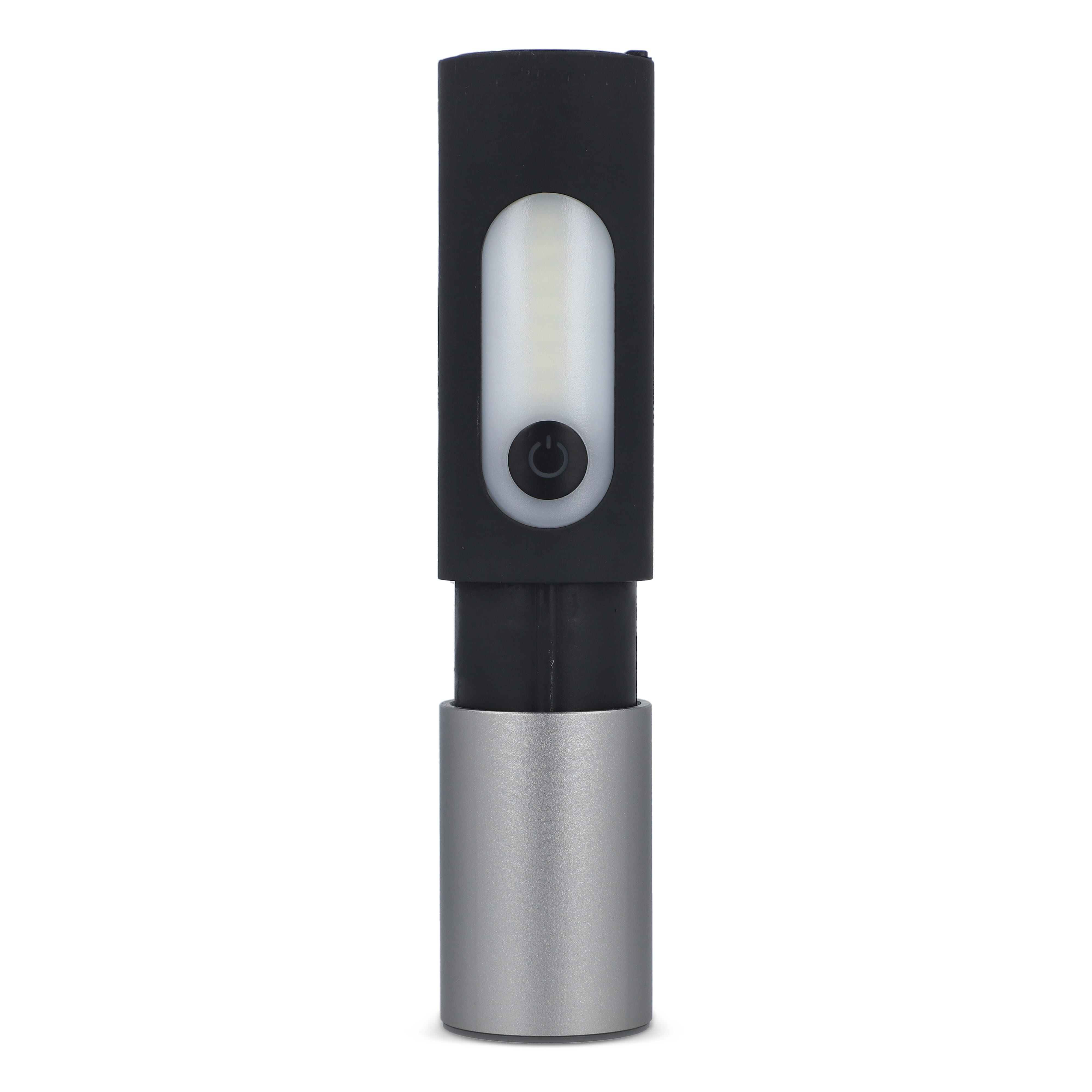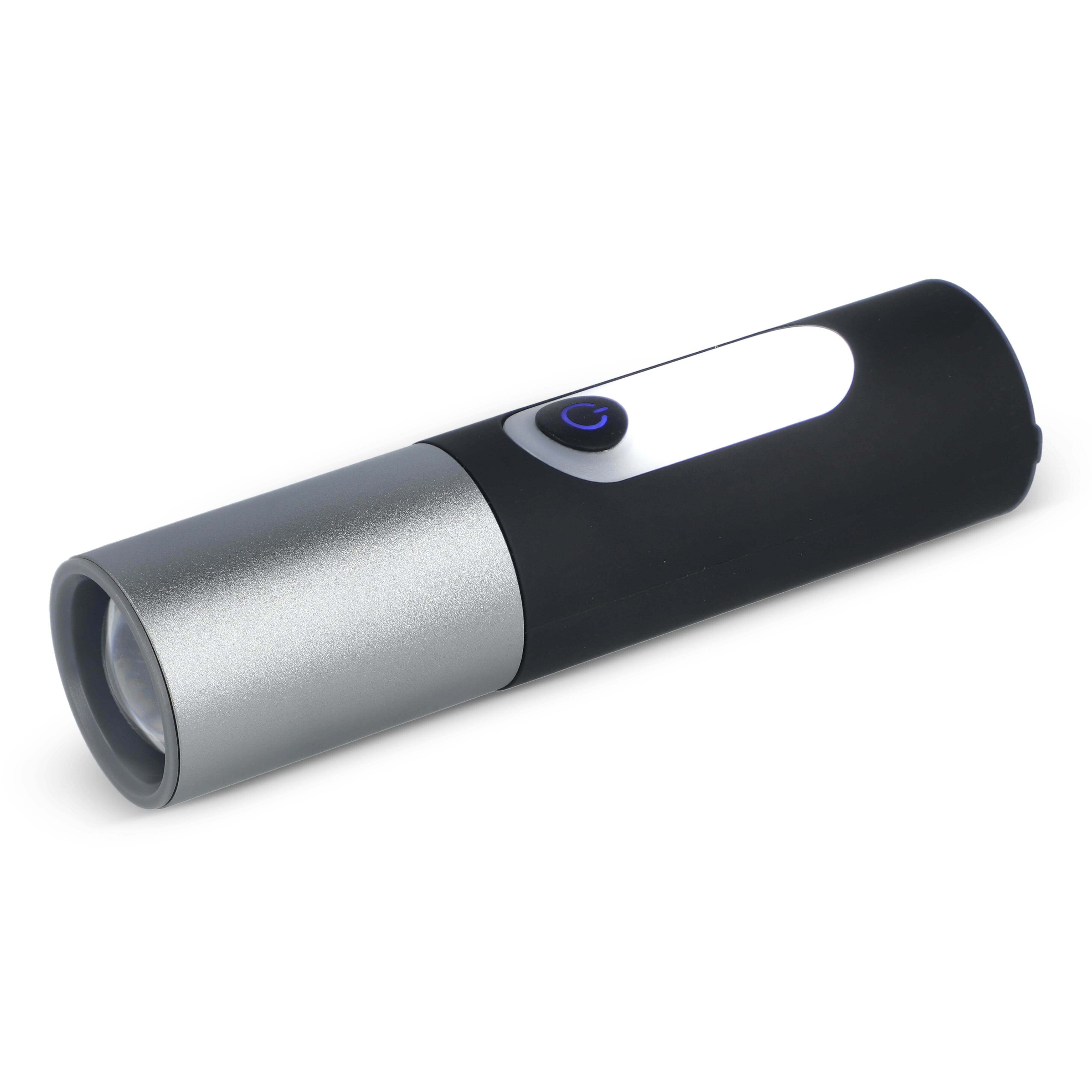 Wiederaufladbare 10-W-LED-Taschenlampe mit Zoomfunktion, 300 lm als Werbegeschenk mit Aufdruck.