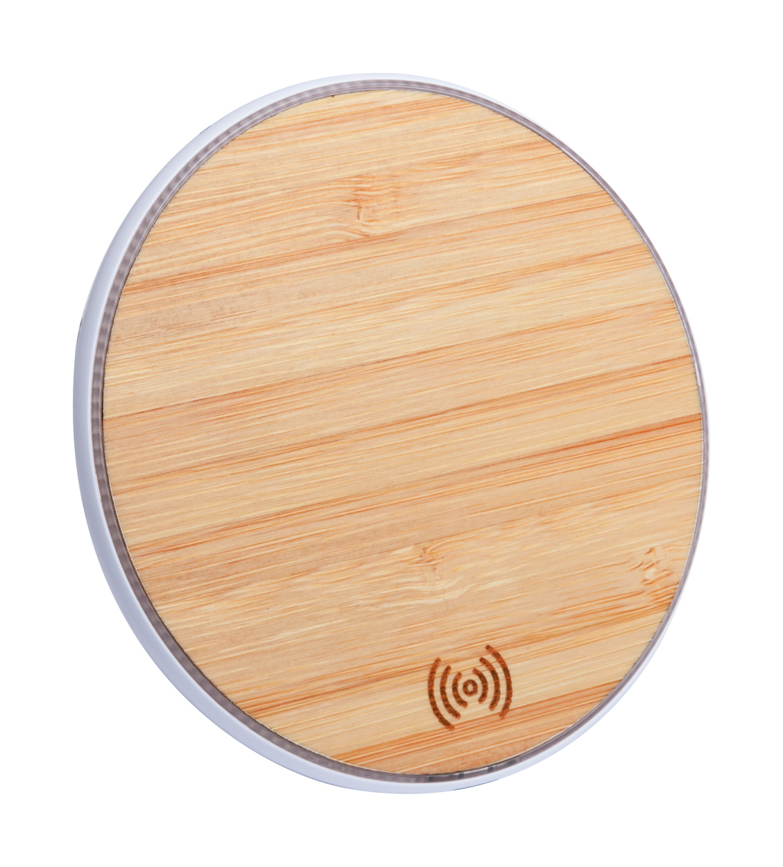 Wireless-Charger (10W) mit Bambusgehäuse. Inkl. USB-Ladekabel.