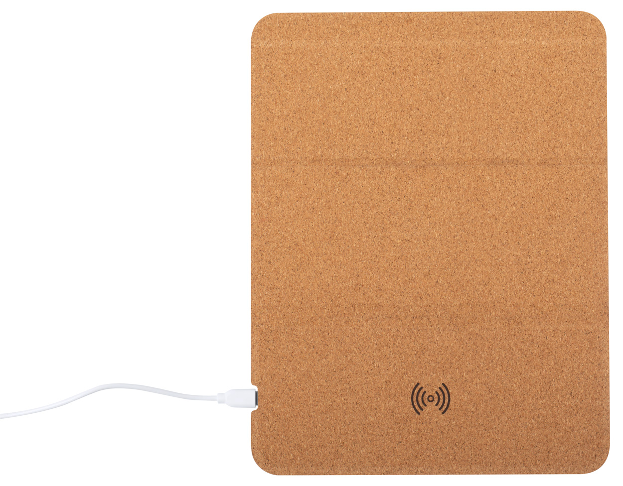 Mousepad aus natürlichem Kork mit integriertem Wireless-Charger (5 W) und Handyhalter. Inkl. USB-C Ladekabel.